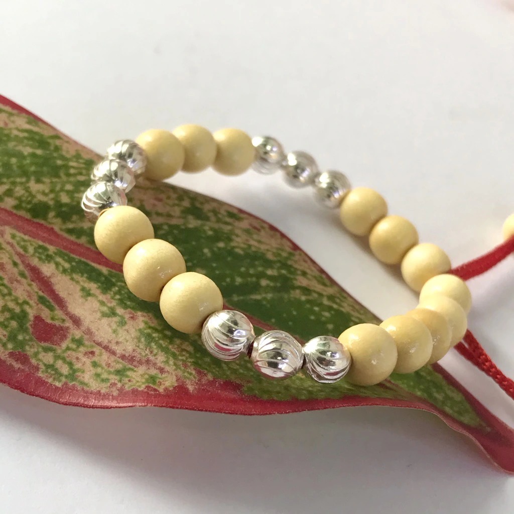 Lắc Tay Lắc Chân Trẻ Em Vòng Dâu Tằm Bạc Hiểu Minh LTE051 làm từ dâu tằm Việt Nam có tác dụng trừ tà ma, vong âm theo và âm khí lạnh.