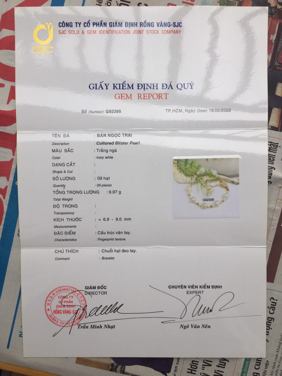 Kèm Giấy kiểm định SẢN PHẨM MẪU tại SJC (Dùng để đối chiếu kết quả trong trường hợp khách hàng kiểm định độc lập).