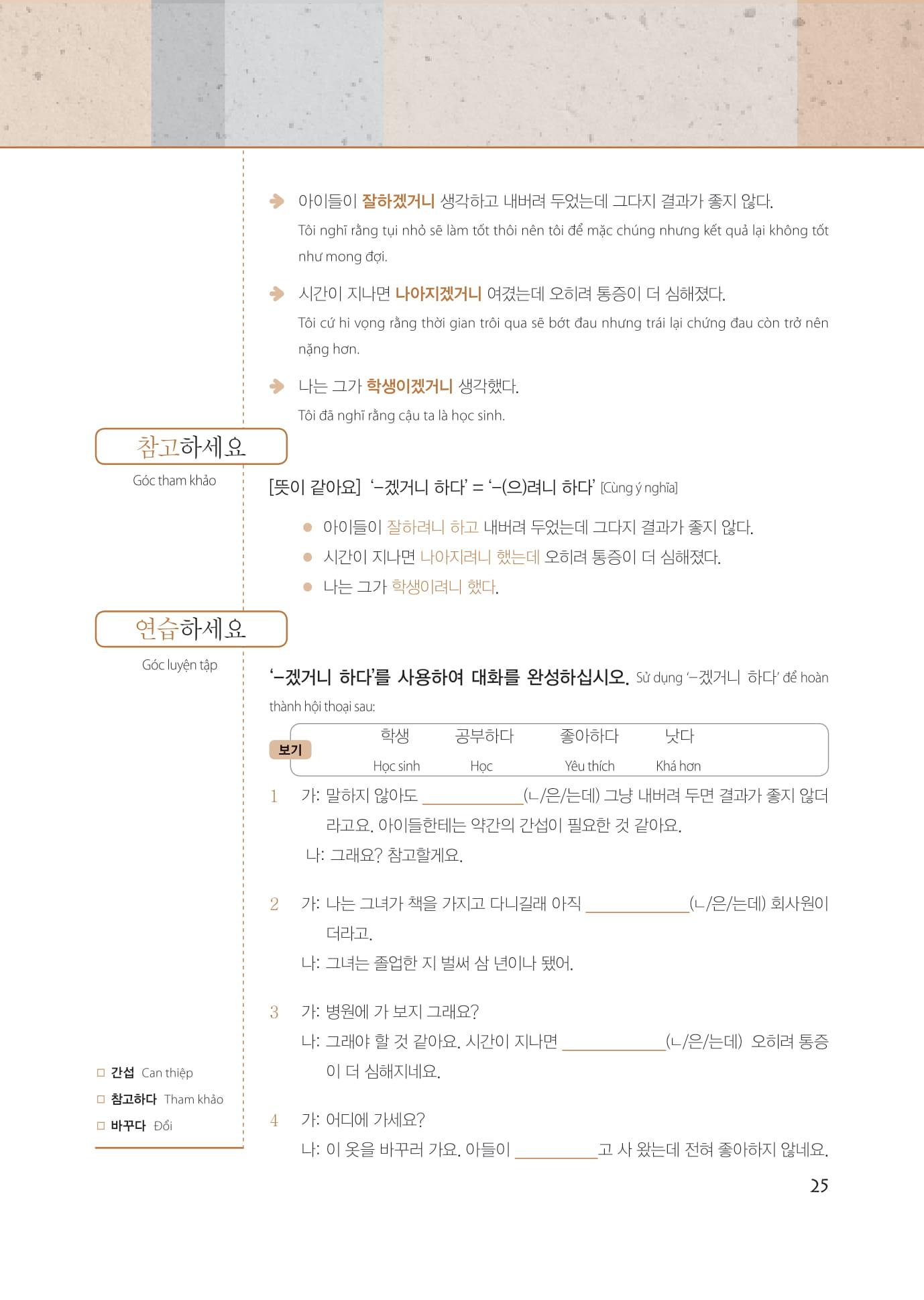 Cung cấp kho từ vựng, ví dụ đa dạng, cũng như các dạng bài tập điển hình giúp người học làm quen chính xác ý nghĩa và cách sử dụng tiếng Hàn