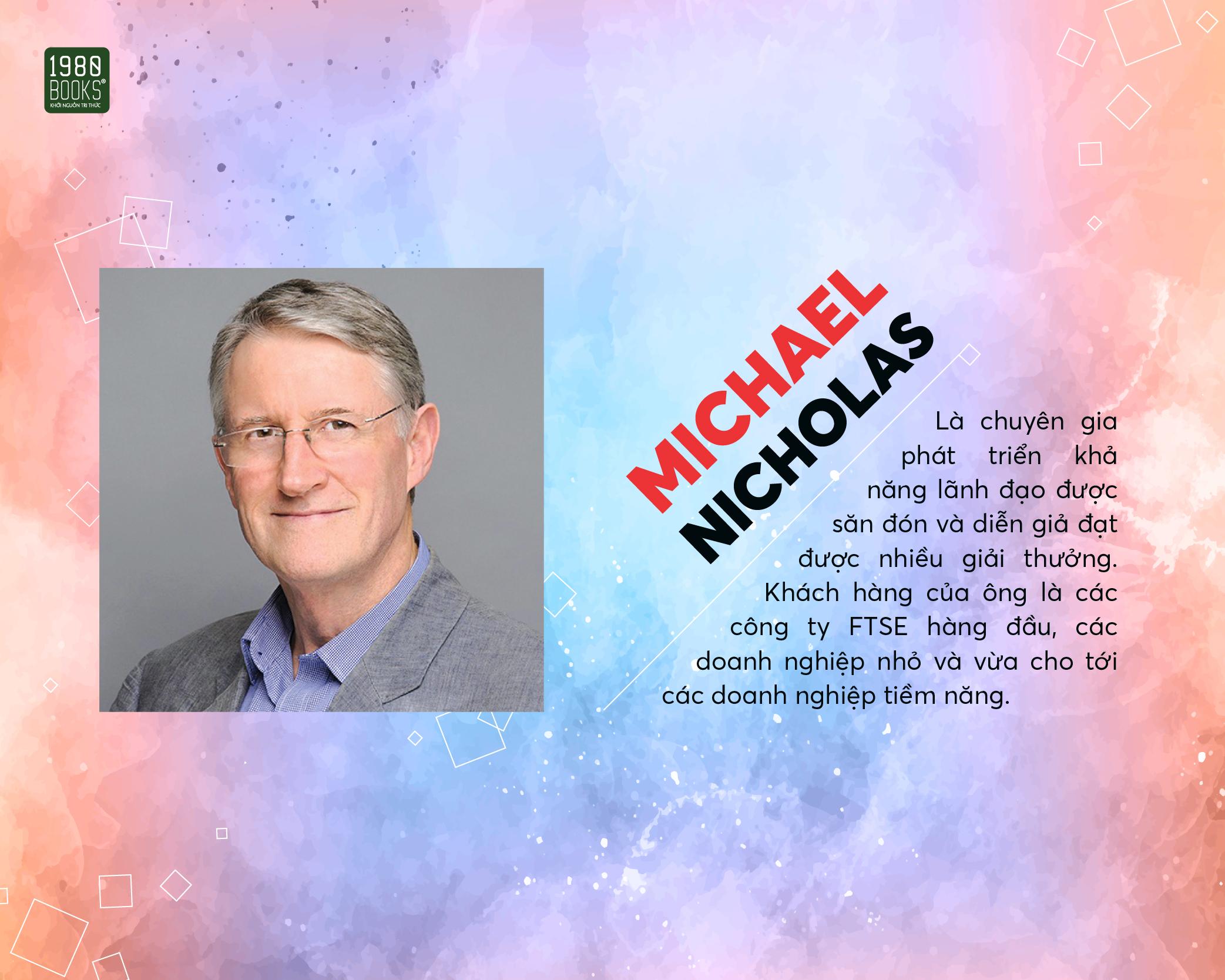 Michael Nicholas dành cả sự nghiệp của mình để làm lãnh đạo, đồng thời giúp đỡ những nhà lãnh đạo khác thay đổi trong việc tác động đến người khác, nâng tầm ảnh hưởng, khả năng sáng tạo và thích nghi của họ. Ông liên tục thách thức bản thân và người khác đặt câu hỏi về sự hiểu biết thông thường và cách mạng hóa tư duy và hành vi. Từng làm việc trong những môi trường có nhiều thách thức, Michael thấu hiểu việc cần phải học cách quản lý những áp lực, điều mà các khách hàng của ông phải giải quyết để đáp ứng được kỳ vọng về hiệu suất công việc.