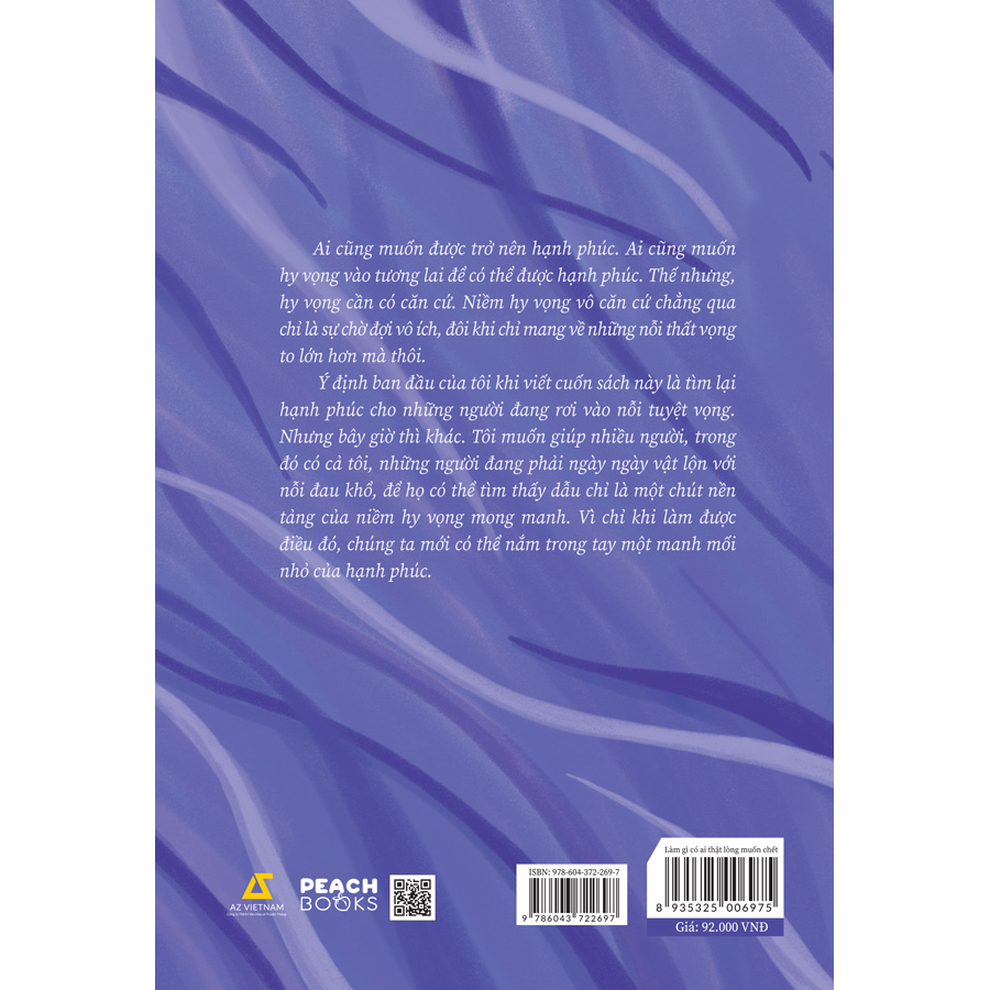 Cuốn sách này có thể giúp đỡ dù chỉ là một phần nhỏ bé cho những ai đang rơi vào tuyệt vọng, hay những người thân trong gia đình họ, trên hết là tất cả những người muốn lấp đầy từng khoảnh khắc của cuộc đời mình bằng niềm hạnh phúc.