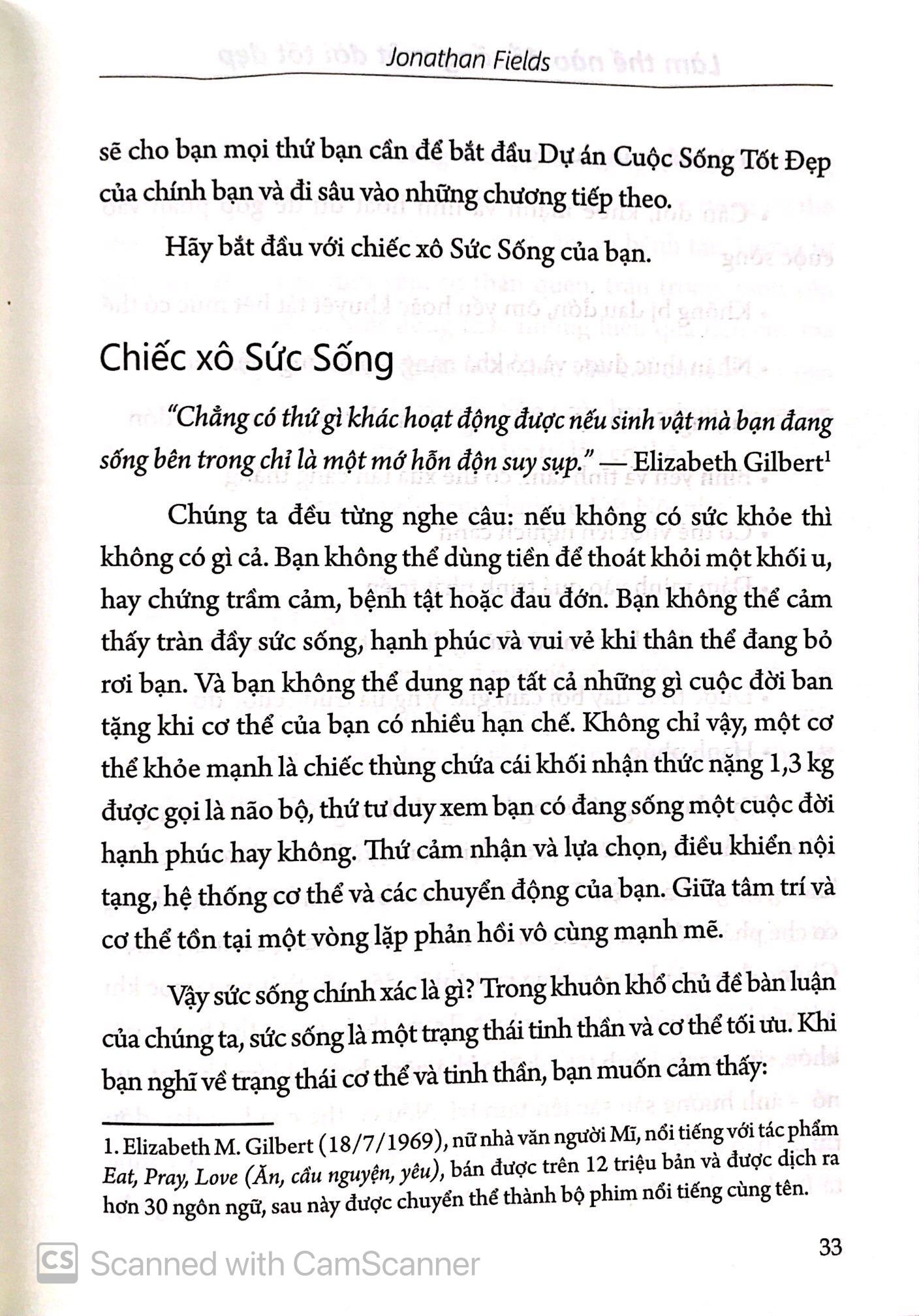Hãy nghĩ về cuộc đời của bạn như ba chiếc xô. Chiếc xô đầu tiên được gọi là Sức Sống, nói đến trạng thái tâm trí và cơ thể bạn. Chiếc xô thứ hai là Kết Nối, nói đến những mối quan hệ. Chiếc xô thứ ba là Cống Hiến, nói đến cách bạn cống hiến cho thế giới này. Những chiếc xô này càng đầy thì cuộc sống của bạn càng trở nên tốt đẹp hơn. Khi tất cả đều gần như sắp trào ra cùng một lúc, cuộc sống sẽ thăng hoa. Đó là điều mà chúng ta hướng đến.