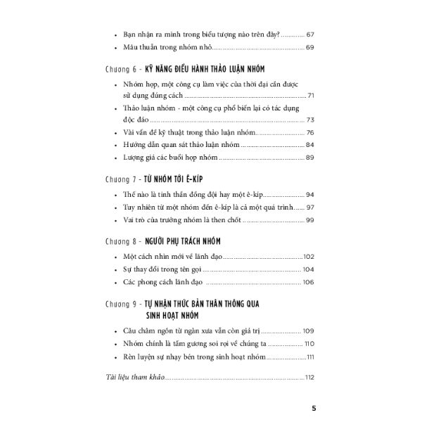 Đó là các kỹ năng giải quyết vấn đề, truyền thông-giao tiếp và làm việc theo tinh thần đồng đội (teamwork). Mục đích của sách là góp phần nâng cao kiến thức và kỹ năng của các bạn trẻ về nhóm để tham gia hữu hiệu vào các hoạt động xã hội hiện đại từ lao động sản xuất, tới giáo dục, vui chơi, giải trí, trong các tổ lao động, câu lặc bộ đội nhóm đến các nhóm giao dục đồng đẳng.
