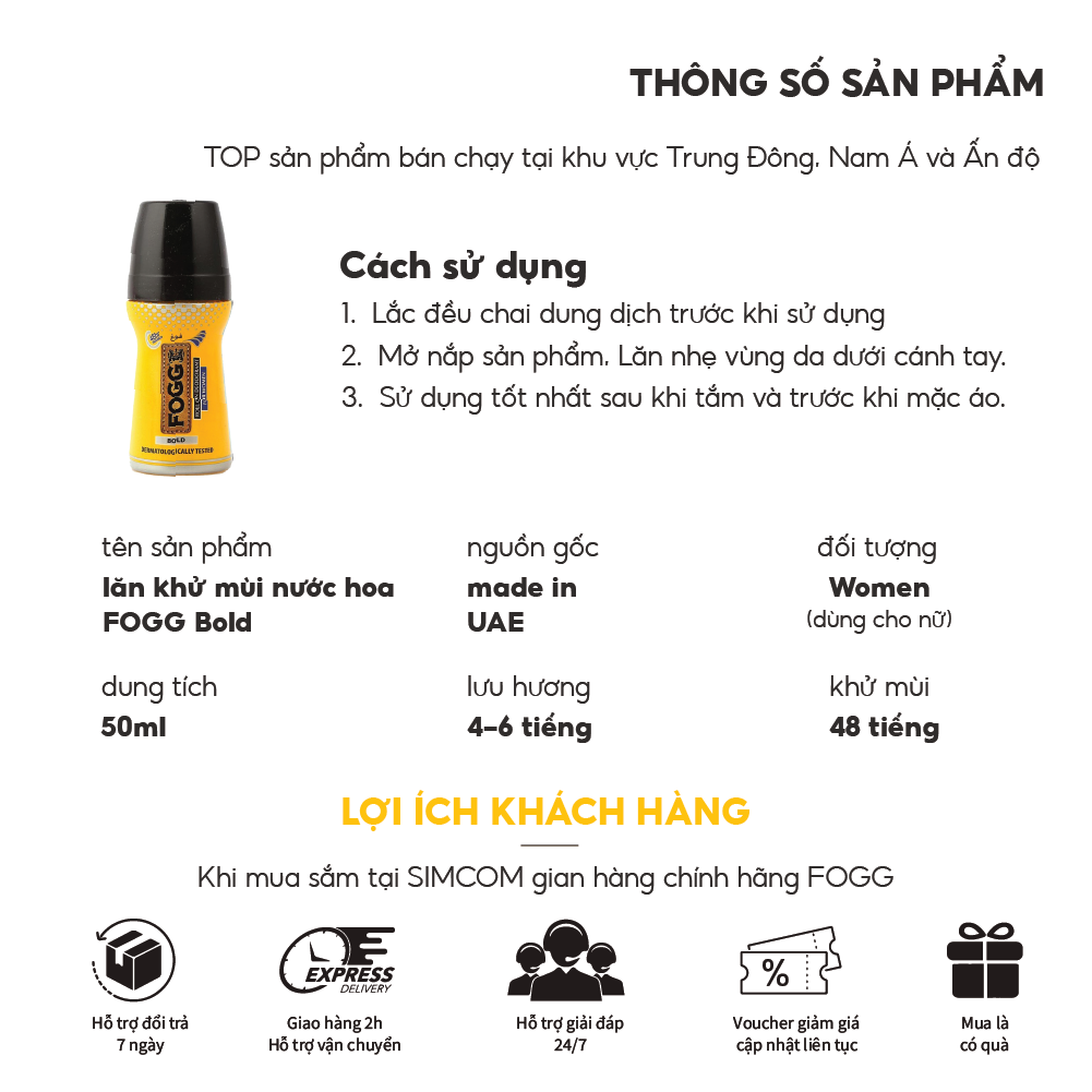 ✨Lăn khử mùi hương nước hoa FOGG Bold 50ml, chính hãng dubai, dành cho nữ, dùng để lăn nách, giảm thiểu mùi cơ thể, lưu hương lâu 4-5 tiếng, khử mùi 48h, không kích ứng da, không thâm nách, không ố áo, Simcom