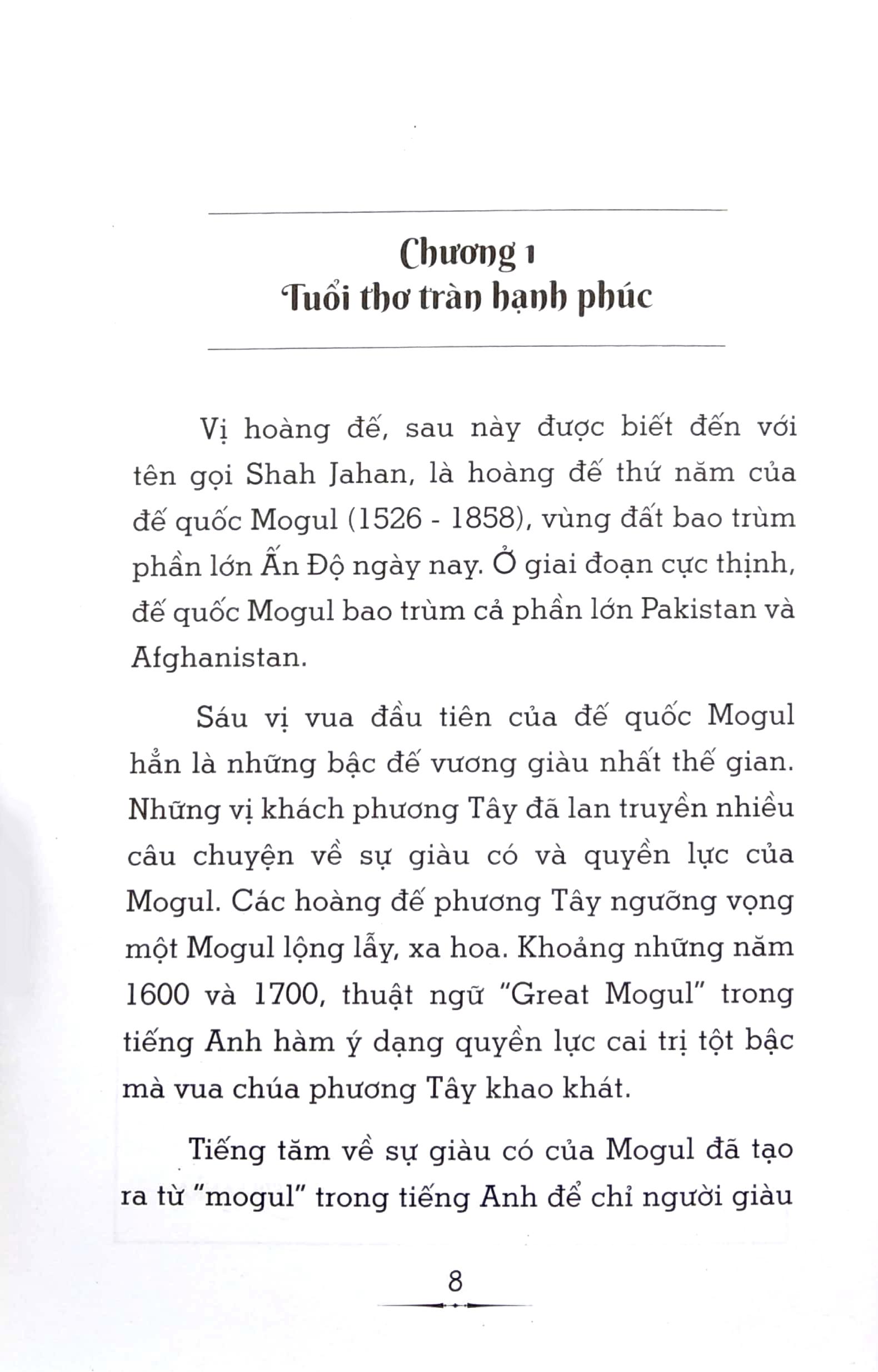 Lăng Mộ Taj Mahal Ở Đâu? “Một kiệt tác được ngưỡng vọng trong kho tàng di sản thế giới.” – UNESCO Cùng khám phá bộ sách Tri thức phổ thông – Những địa danh làm nên lịch sử để hiểu hơn về những công trình, kiến trúc trường tồn theo thời gian. Đằng sau những biểu tượng của thế giới là cả một lịch sử huy hoàng, hãy cùng quay trở lại 2500 trước công nguyên để làm sáng tỏ sự ra đời của Đại Kim Tự Tháp hay bôn ba đến đất nước Ấn Độ để cùng chiêm ngưỡng sự lung linh và tráng lệ của ngôi đền TAJ MAHAL. Đặc biệt mỗi cuốn sách sẽ đi kèm bản đồ được in màu vô cùng đặc biệt dẫn lối bạn tới các di tích lịch sử.