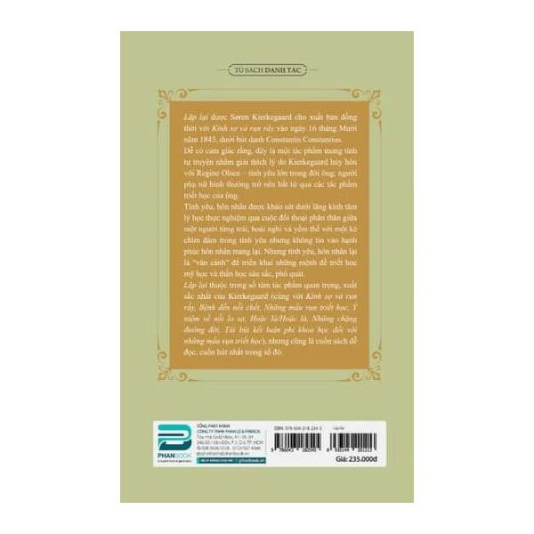Lặp lại thuộc trong số tám tác phẩm quan trọng, xuất sắc nhất của Kierkegaard, nhưng cũng là cuốn sách dễ đọc, cuốn hút nhất trong số đó.