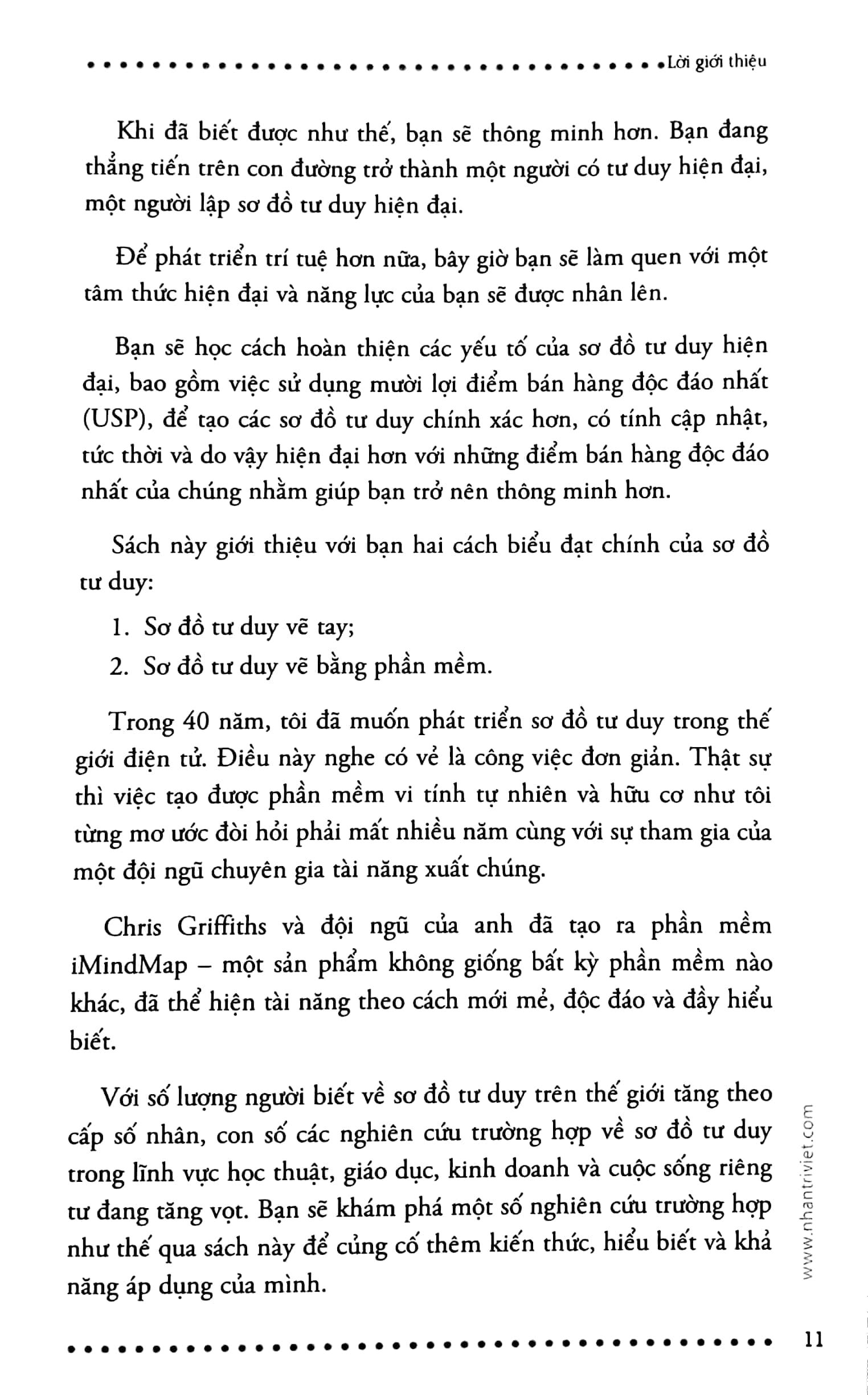 Cuốn sách này giúp bạn áp dụng kỹ thuật lập sơ đồ tư duy trong kỷ nguyên hiện đại. Cách đây bốn thập kỷ, Tony Buzan đã phát minh ra một công cụ mang tính đột phá là sơ đồ tư duy. Hiện nay có hơn 250 triệu người đang sử dụng công cụ linh hoạt này và những ứng dụng của nó đã không ngừng được nhân rộng để có mặt trong mọi lĩnh vực từ kinh doanh, giáo dục, đời sống đến gia đình.