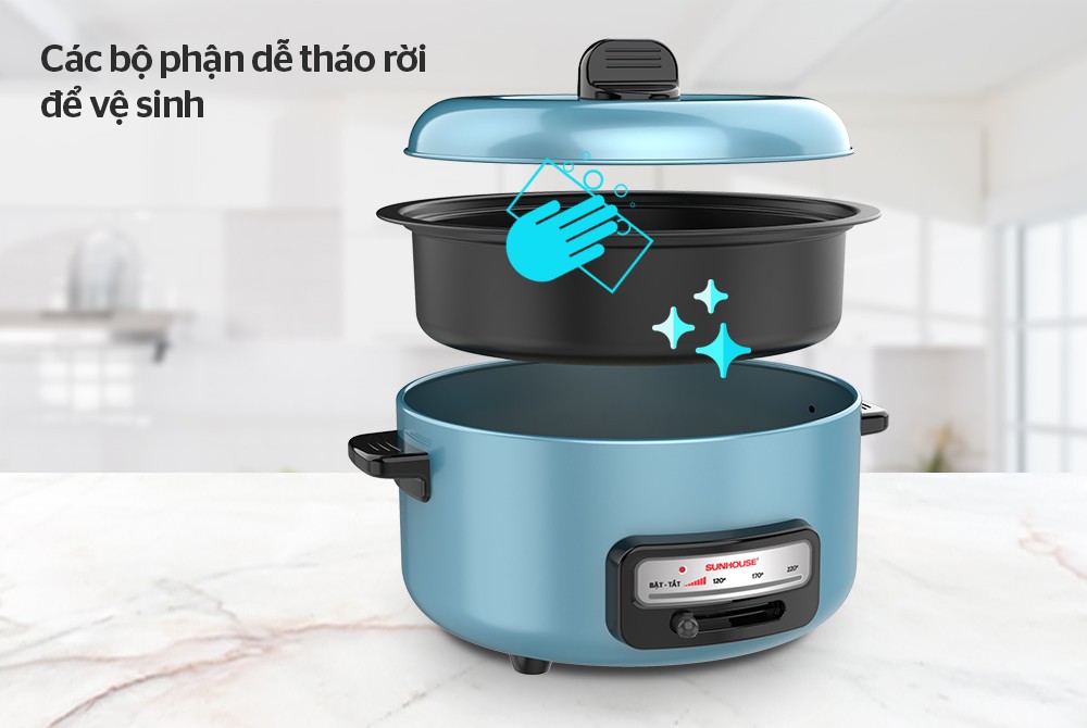 Các bộ phận nồi có thể dễ dàng tháo lắp nên việc vệ sinh, lau chùi rất đơn giản và nhẹ nhàng.