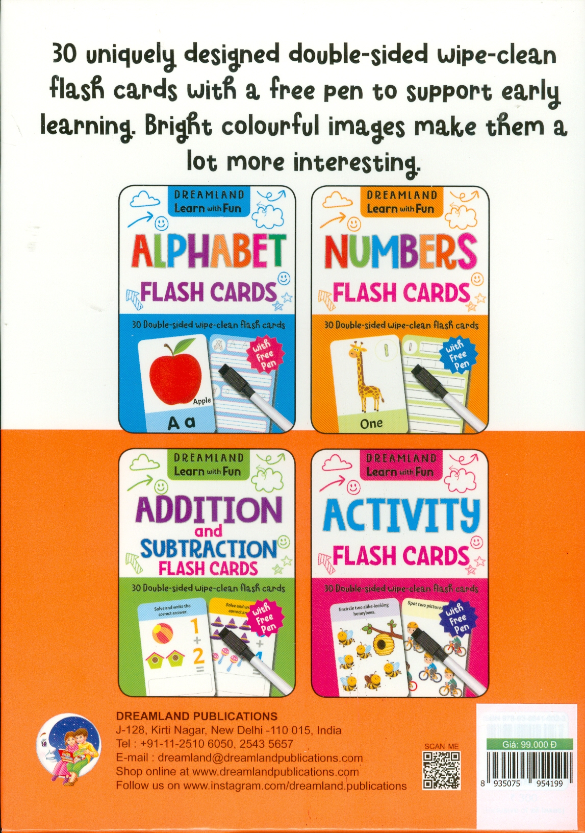 ‘Learn with Fun – Numbers Flash Cards’ features one number per card on one side. The other side of the card allows the child to trace and write the number. Recommended for toddlers these cards