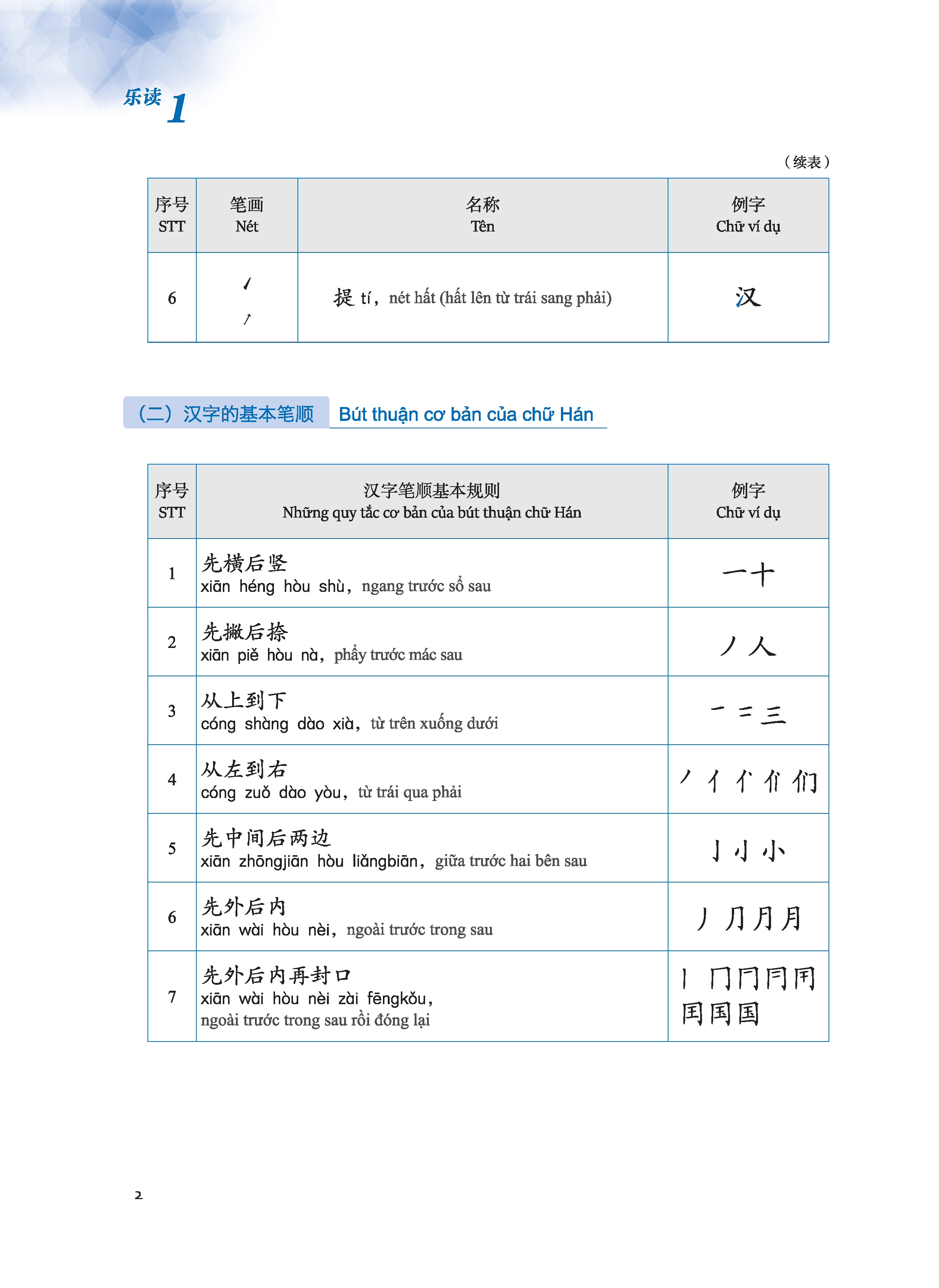 Mảng này giảng giải những tri thức cơ sở về chữ Hán, đồng thời thiết kế phần “Luyện tập” để kiểm tra tình hình lý giải và nắm bắt của học sinh. Phần giảng giải đơn giản, rõ ràng, dễ hiểu, có kèm theo phần dịch tiếng Việt, điều này giúp người học giảm bớt tâm trạng ngại khó khi học chữ Hán, nắm được phương pháp học tập chính xác, nâng cao hứng thú và hiệu suất học tập. Bài 1 và bài 2 chủ yếu giới thiệu về các nét chữ và quy tắc bút thuận của chữ Hán. Bài 3 đến bài 7 giới thiệu về cấu tạo cơ bản của chữ Hán, giảng giải một cách hệ thống về chữ tượng hình, chữ chỉ sự, chữ hội ý và chữ hình thanh; phần chữ hình thanh được chia thành hai bài, một bài chủ yếu giảng giải về ý phù (hình bàng), một bài chủ yếu giảng giải về thanh phù (thanh bàng). Bài 8 giảng giải về ba hiện tượng chữ cận hình, chữ đồng âm và chữ đa âm tồn tại trong tiếng Hán. Bài 9 giới thiệu về mối quan hệ giữa chữ Hán và từ.