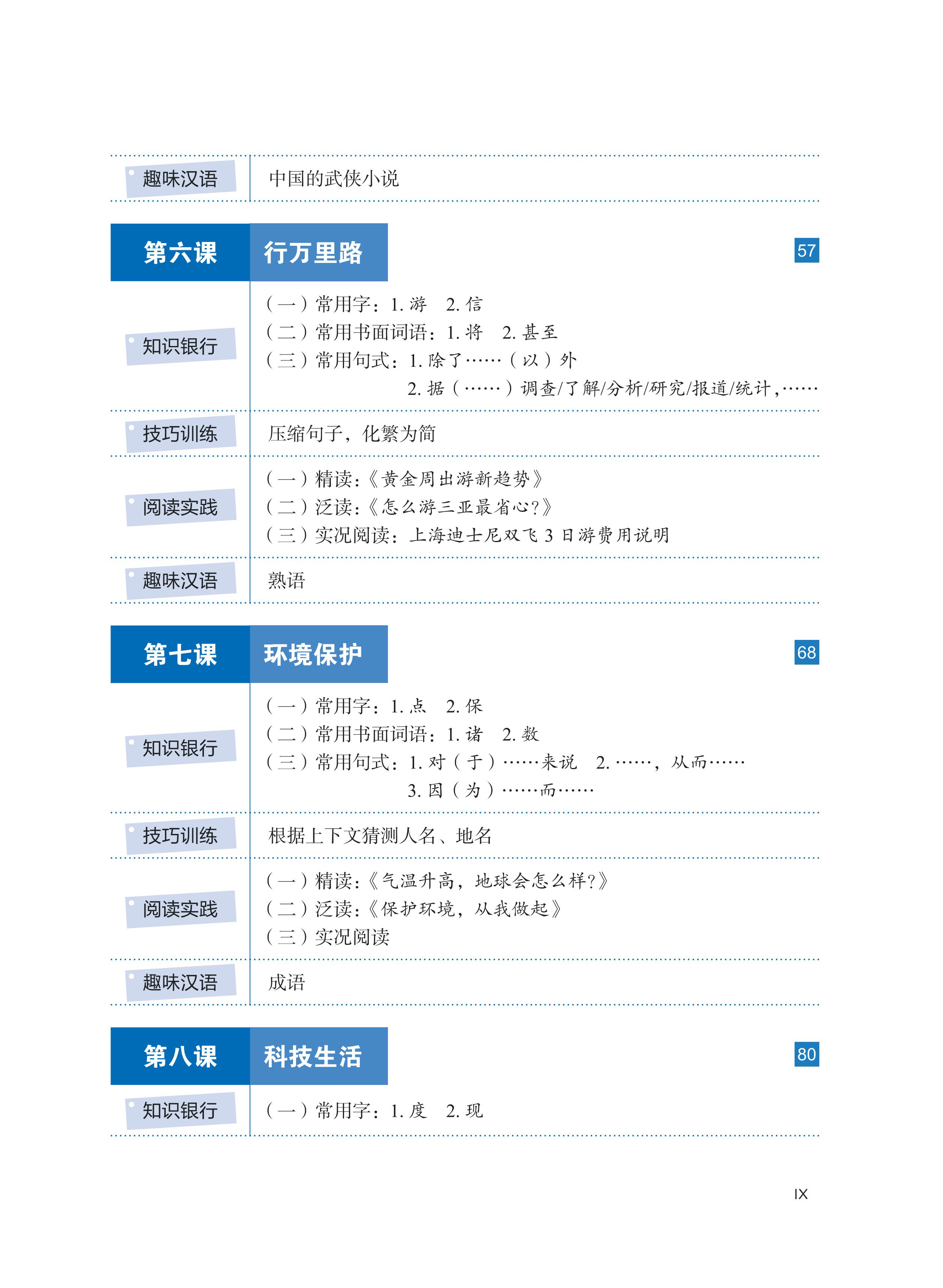 Phần 4: Hán ngữ thú vị. Bao gồm những tri thức thú vị, thục ngữ, ngữ lưu hành trên mạng, v.v., nhằm điều tiết cường độ và tiết tấu đọc, kết hợp giải trí với học tập.