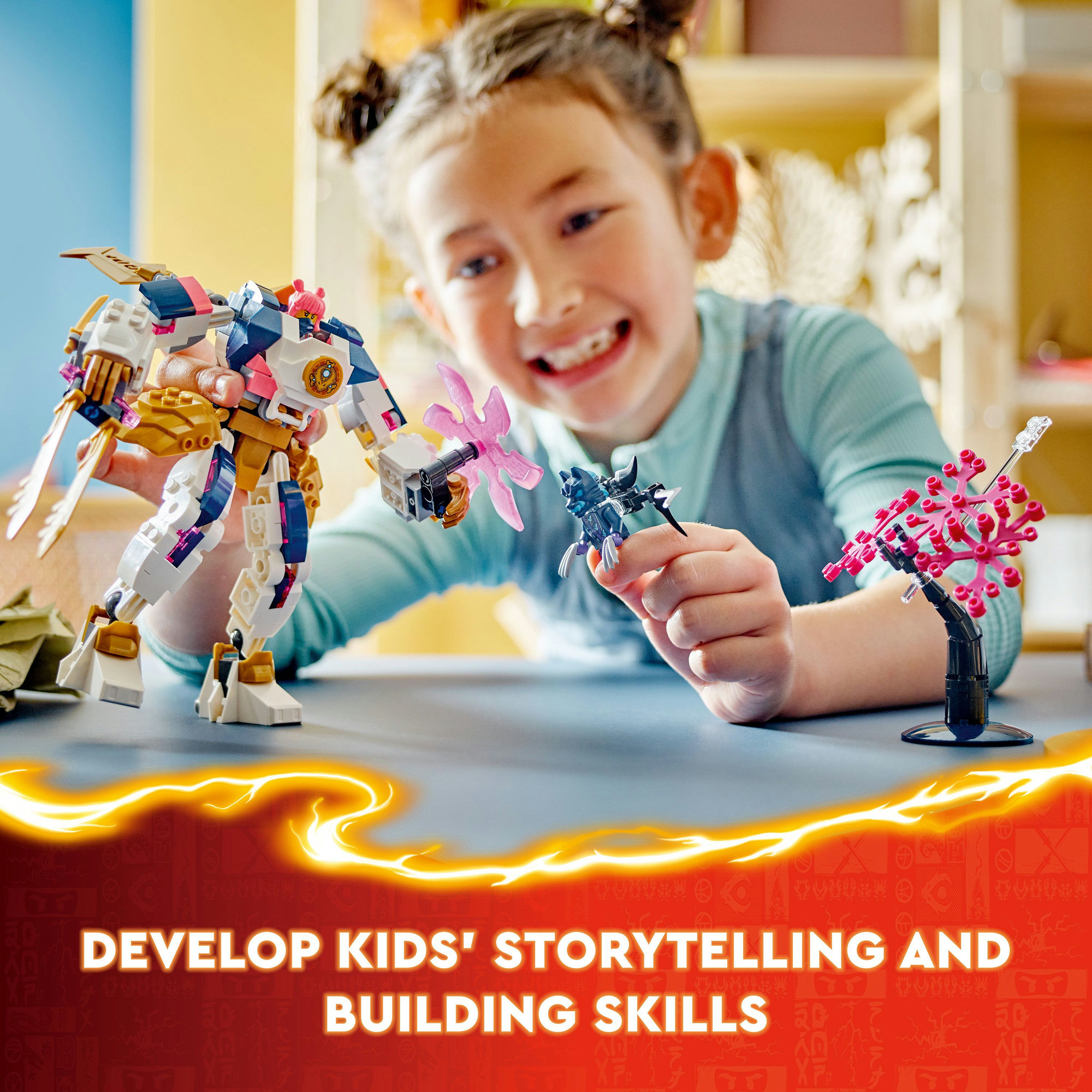 • Xây dựng thế giới LEGO NINJAGO của bé – Cùng sưu tập thêm những bộ trò chơi LEGO NINJAGO khác và xây dựng một thế giới của riêng bé, từ đó mở ra những câu chuyện mới