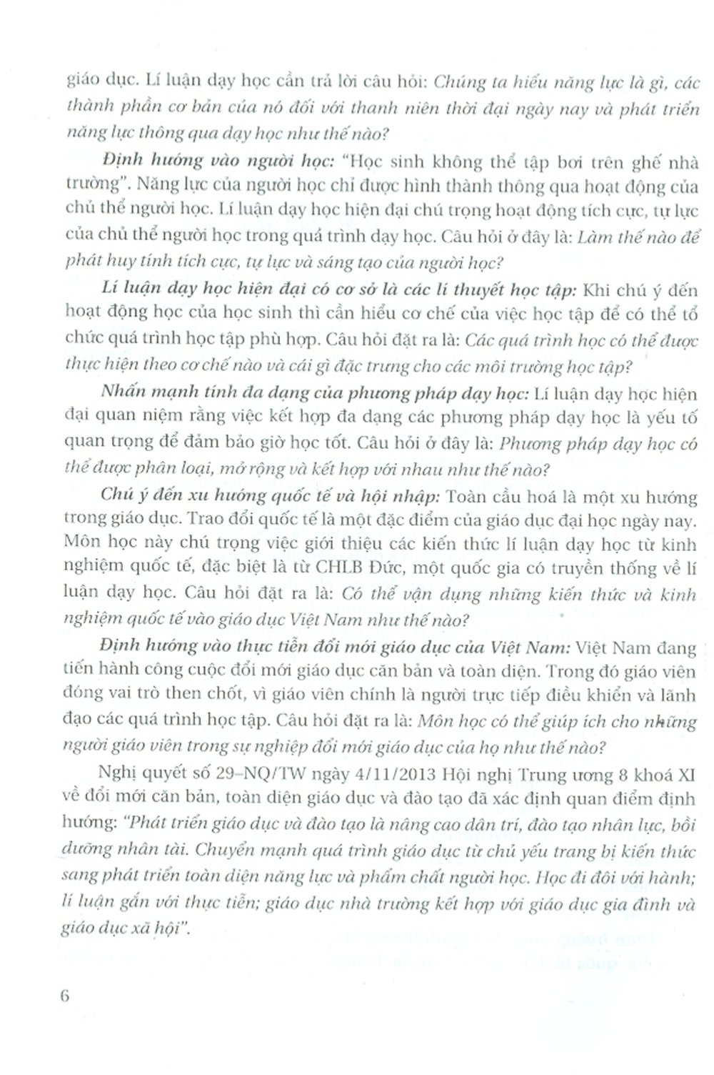 Nội dung của cuốn sách đề cập đến các chủ đề cơ bản của lí luận dạy học đại cương. Nội dung cụ thể của từng chương là sự mở rộng và đi sâu so với chương trình đào tạo ở bậc Cử nhân, những cách tiếp cận mới từ kinh nghiệm quốc tế. Trong sách có thể có những quan điểm, khái niệm khác với cách hiểu hiện nay của học viên, thông qua đó giúp người học thấy được sự đa dạng trong lí luận dạy học. Trong quá trình học tập trên lớp, với quỹ thời gian có hạn, giảng viên và học viên có thể thỏa thuận đi sâu vào một số chủ đề. Các chủ đề còn lại dành cho hoạt động tự nghiên cứu của học viên.