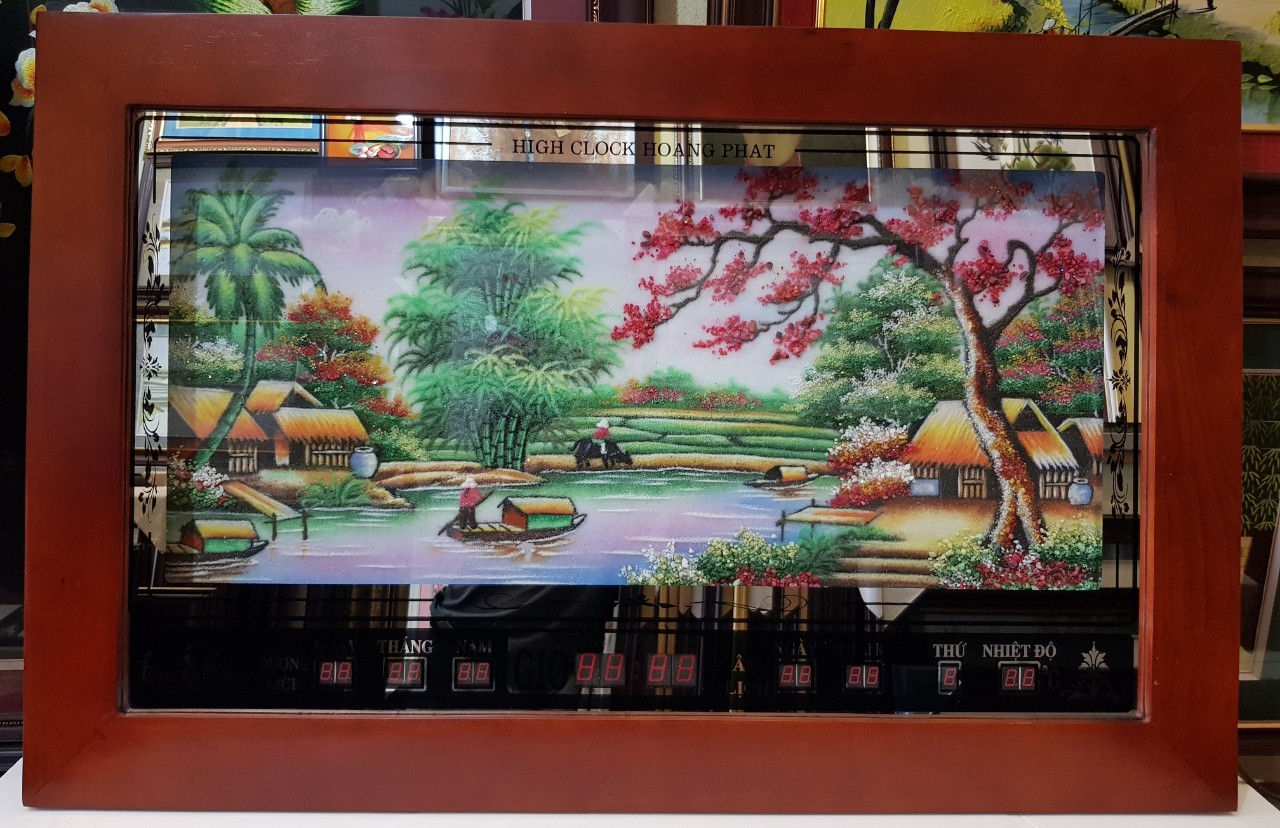 Mua tại TiktokSản phẩm tranh đá cảnh ngôi nhà ven suối gắn đèn led, đồng hồ điện tử ,giây ,phút , giờ, ngày , tháng năm , lịch âm dương và nhiệt độ.