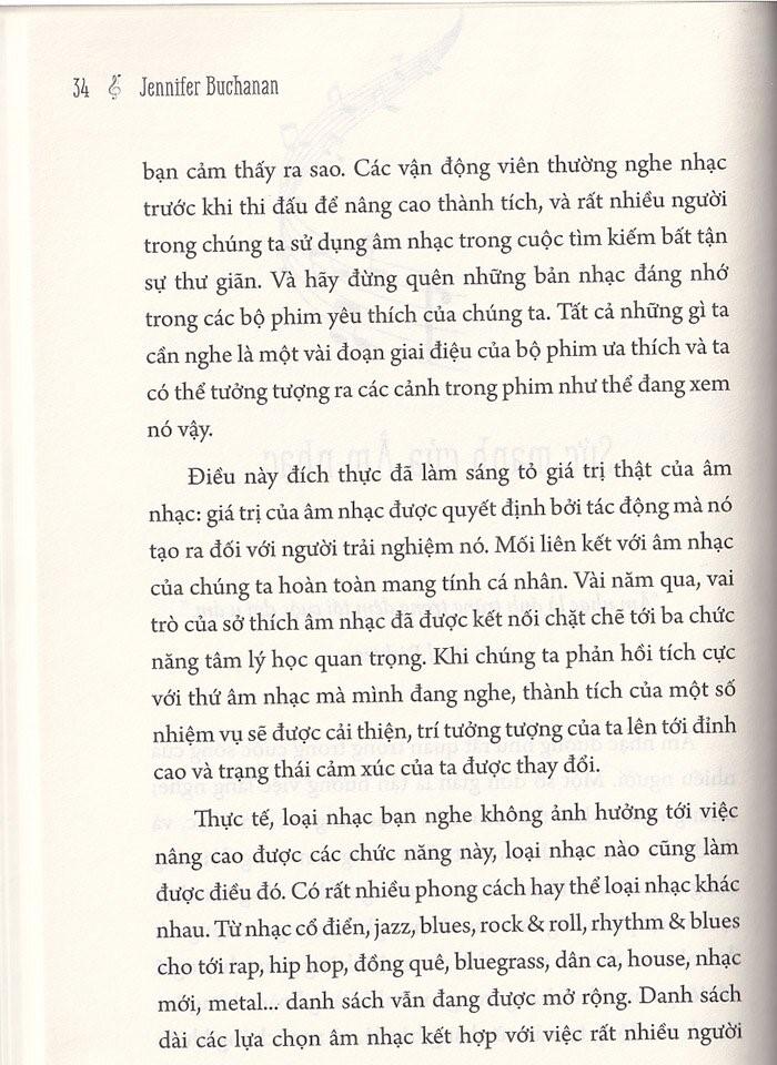 Một cách bản năng, chúng ta đều biết âm nhạc có sức ảnh hưởng rất lớn, ở nó có gì đó thật kỳ diệu. Khi nghe bài hát đúng tâm trạng, bạn sẽ khóc hoặc cười, gõ nhịp chân hoặc chỉ thở ra mãn nguyện “à”. Âm nhạc kết nối tới thứ gì đó sâu thẳm trong chúng ta, thứ gì đó liên quan đến khả năng sáng tạo ra mọi điều ta khao khát. Tôi đang không chỉ nói về hội họa, âm nhạc hay văn chương, mà mọi sự sáng tạo của cuộc sống – làm ra một chiếc bánh hoặc dọn sạch một khu vực trong nhà bạn, hay thậm chí chỉ là tạo ra một cảm xúc, tốt hoặc xấu. Âm nhạc mang đến cho chúng ta một đường dẫn trực tiếp tới sức mạnh đó và giúp nó nở rộ theo cách gần như không thể lý giải được. Tôi đã nghe nói về thuật ngữ “liệu pháp âm nhạc” cách đây ít lâu, nhưng chưa bao giờ thực sự chú ý, thành thật mà nói, thậm chí còn gạt nó đi vì từ “liệu pháp” (làm thế nào một thứ tuyệt vời như âm nhạc lại bị quy thành liệu pháp – như phân tâm học hay gì đó). Sau đấy, tôi đã gặp Jennifer Buchanan. Cô là một chuyên gia trị liệu âm nhạc được đào tạo, nhưng có điều gì đó ở Jennifer khiến tôi ngay lập tức nghiêm túc chú ý. Trước cô, chưa từng có ai nói với tôi những điều như vậy về âm nhạc. Gần với những điều “không thể lý giải nổi” mà tôi luôn biết có tồn tại trong âm nhạc nhưng chưa bao giờ thật sự nắm bắt được. Rõ ràng là Jennifer ấp ủ một cuốn sách và nóng lòng được xuất bản nó. Tôi chưa đọc cuốn sách nào về “liệu pháp âm nhạc”, nhưng tôi có thể nói rằng cô ấy đang cố gắng mang đến thứ gì đó chưa từng được trình bày đầy đủ trên giấy. Tôi nói với cô ấy rằng khoa học về âm nhạc không phải là điều khiến chủ đề này hấp dẫn tôi. Khi cô ấy bắt đầu kể cho tôi nghe các câu chuyện của mình, tôi biết rằng những câu chuyện đó đã hàm chứa câu trả lời: đó là những gì âm nhạc có thể làm với một người đang cần được cổ vũ, giảm căng thẳng, hay thậm chí đang tìm cách kết nối trở lại với thế giới. Bốn năm đã trôi qua kể từ lần đầu tiên tôi gặp Jennifer và hai năm kể từ khi chúng tôi xuất bản ấn phẩm đầu tiên của cuốn sách này. Sau khi đọc một số bản nháp sơ bộ, tôi đã gợi ý cho cô về cách làm nổi bật thông điệp. Sau khi đọc cuốn sách của cô, tôi đã suy nghĩ rất nhiều về âm nhạc và việc không hiểu sao cuộc sống của tôi lại thiếu đi âm nhạc nhiều đến thế. Tôi yêu âm nhạc, tôi lớn lên với việc chơi piano. Tôi có thể chọn bất kỳ nhạc cụ nào, trừ đàn guitar vì một vài lý do, và học chơi khá nhanh. Nhưng vài năm trước, tôi không còn nghe nhạc thường xuyên nữa. Tôi không còn bật radio trong xe hơi vì thích sự im lặng. Là một tác giả, đôi khi tôi tập trung hoàn toàn vào những suy nghĩ của mình. Tôi nói về việc “nghe” một cuốn sách trong đầu trước khi viết nó ra, vì vậy có thể nói rằng tôi “viết” liên tục, bất kể tôi đang làm gì khác. Nhưng kể từ khi đọc bản nháp đầu tiên của cuốn sách này, tôi đã có chút áy náy với ý nghĩ mình không còn nghe nhạc nhiều như trước nữa, và chắc chắn tôi đã không nghe bất cứ thứ gì có thể chắp cánh cho mình. Tôi có một cô con gái đang học tiểu học nên chúng tôi thường xuyên nghe nhạc pop, nhưng các thể loại khác thì không nhiều lắm. Rồi một buổi sáng Chủ nhật, tôi từ cửa hàng tạp hóa trở về nhà. Người cha yêu dấu của tôi vừa qua đời khoảng ba tuần trước đó; tôi ngập ngụa trong công việc, và không hề vui vẻ – tôi chỉ làm việc nhà, đảm bảo gia đình mình được chăm sóc đầy đủ. Khi bước vào cửa, tôi nghe thấy chất giọng tuyệt vời của James Taylor đang hát “Sweet Baby James”. Chúng tôi có một cái máy nghe nhạc nhỏ trong bếp, không phải là đồ xịn gì và chồng tôi đã bật đĩa Những bài hát hay nhất của James Taylor mà anh tìm được tại một cửa hàng từ thiện ngày hôm trước. Khi nghe những giai điệu của bài hát đó, tôi đã suýt khóc. Đó là thứ hay nhất mà tôi được nghe trong suốt một thời gian dài. Vì bất cứ lý do gì, buổi sáng hôm đó, giai điệu ấy chính là âm nhạc “của tôi”, và thông điệp từ cuốn sách của Jennifer bừng lên trong tôi. Khi tôi cần một thứ gì đó êm dịu dễ chịu, thì nó đây: James Taylor đang hát cho tâm hồn tôi. Ngay lập tức tôi cảm thấy thư giãn hơn. Tôi bỏ túi đồ tạp hóa trên tay xuống và bắt chồng khiêu vũ với mình ngay giữa bếp. Sau suốt một thời gian dài tôi mới cảm thấy kết nối với cuộc sống nhiều đến thế. Đó là một kỷ niệm tôi sẽ trân trọng. “Ứng dụng âm nhạc để thay đổi cuộc sống” là cuốn sách về việc sử dụng âm nhạc có chủ đích. Bạn sẽ thấy rõ điều này hơn trong các trang tiếp theo, nhưng tôi chắc chắn, theo bản năng, bạn vốn đã biết điều đó nghĩa là gì rồi. Đó là việc tìm kiếm âm nhạc phù hợp cho bất kỳ tình huống nào: khi bạn c