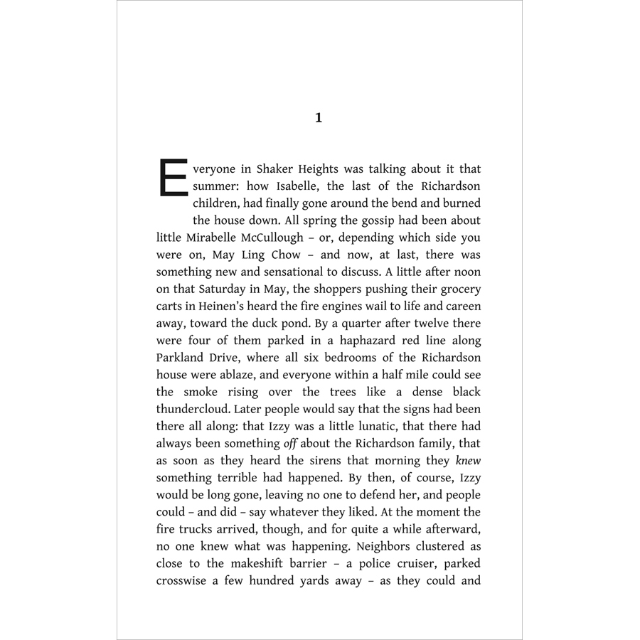 Everyone in Shaker Heights was talking about it that summer: how Isabelle, the last of the Richardson children, had finally gone around the bend and burned the house down.