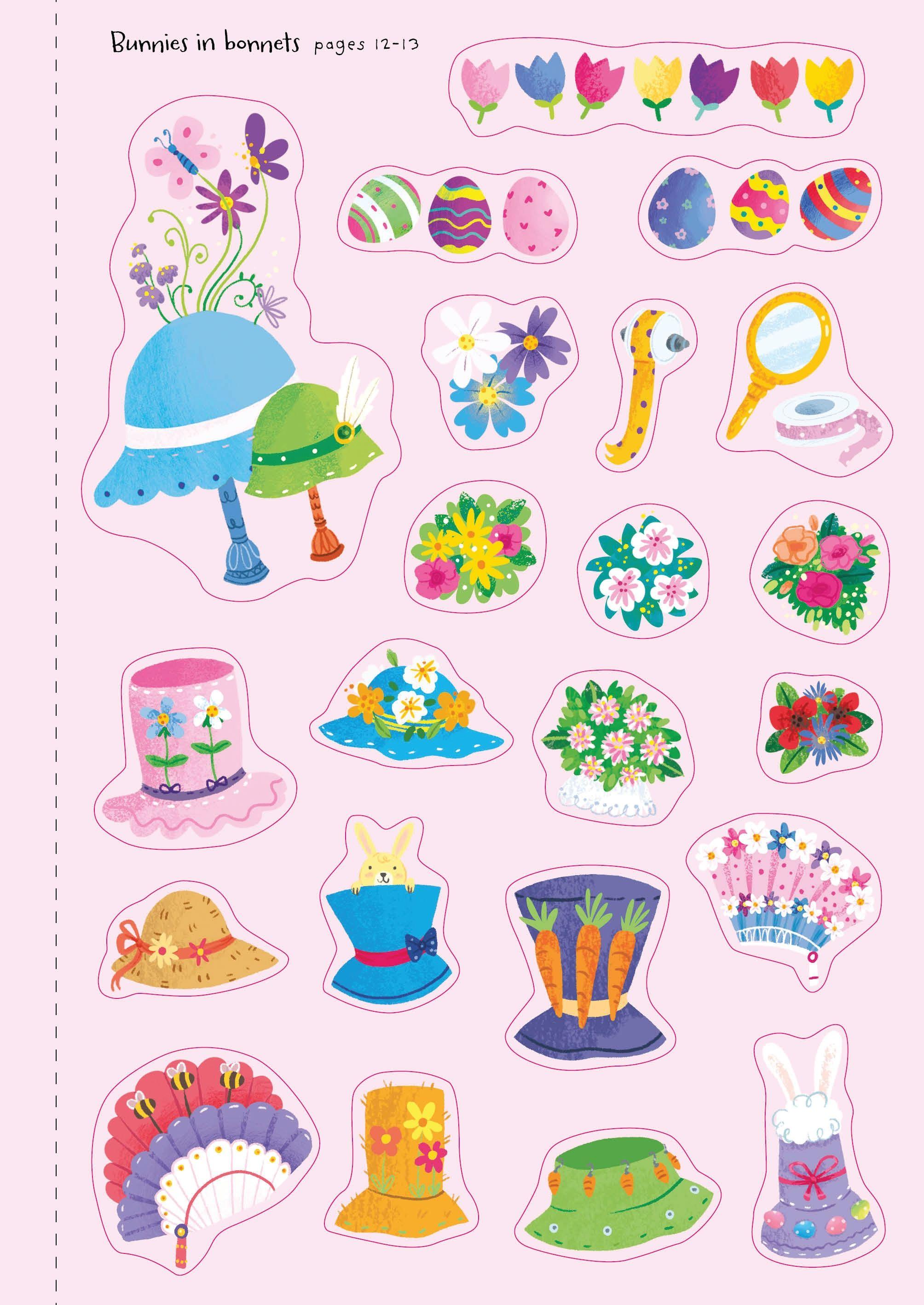 Help the busy bunnies get ready for Easter. Whether it's baking tasty treats, hunting for Easter eggs, planting colourful spring flowers, or making Easter bonnets, there are lots of exciting stickers to add to every scene.
