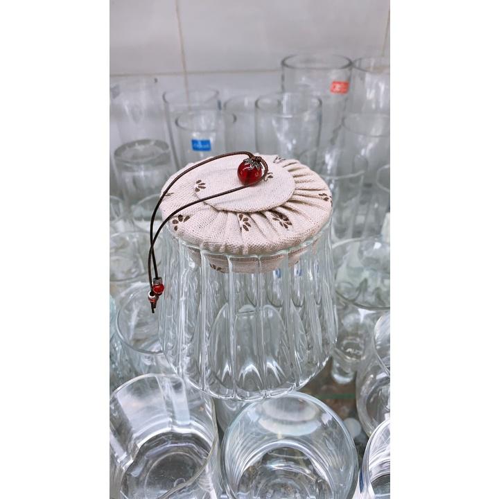 ✨Lọ đựng chè, thực phẩm khô bằng thủy tinh nắp vải vân kẻ sọc ( Giao nắp màu ngẫu nhiên )