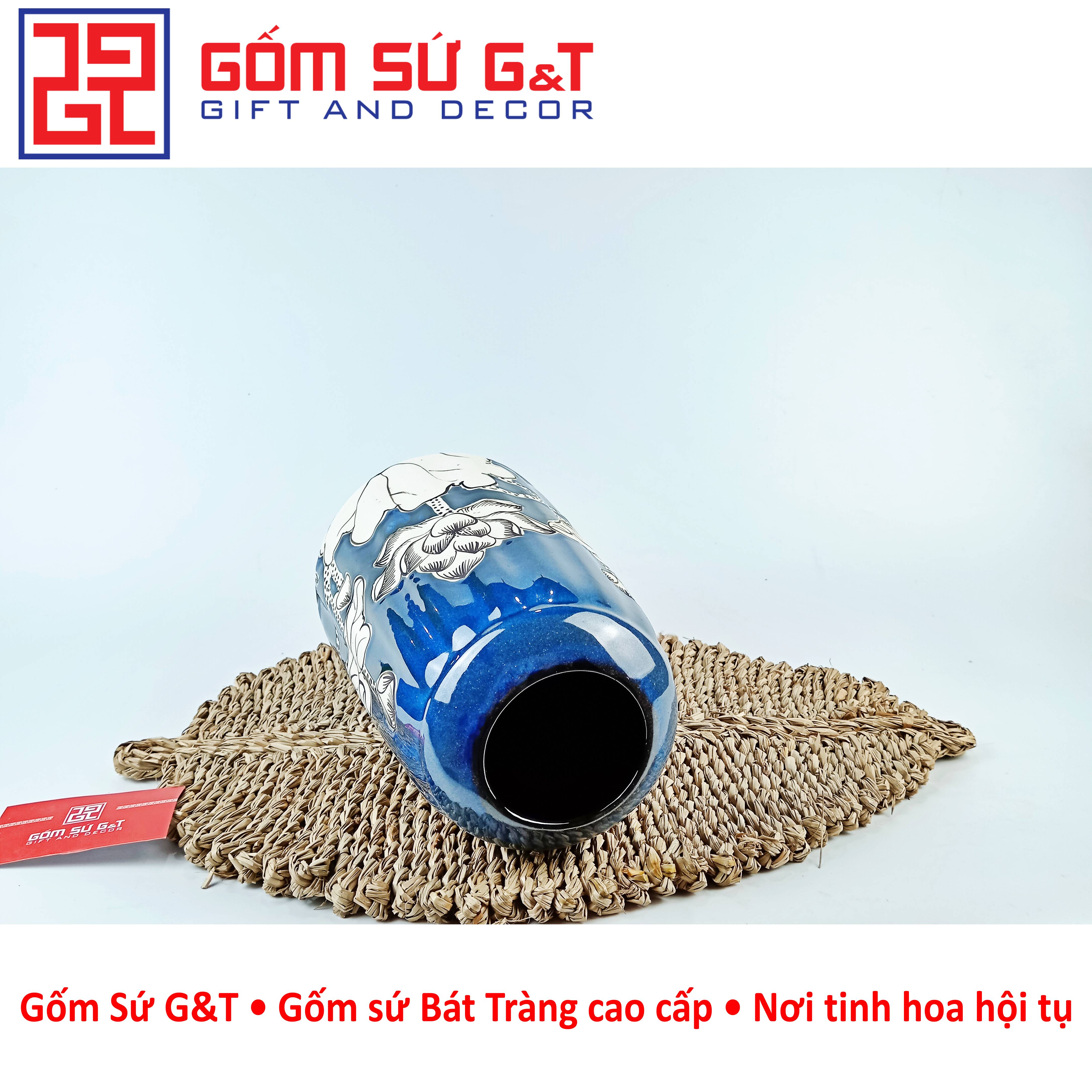 ✨Lọ hoa men hỏa biến lá dứa miệng thấp vẽ sen Gốm Sứ G&T