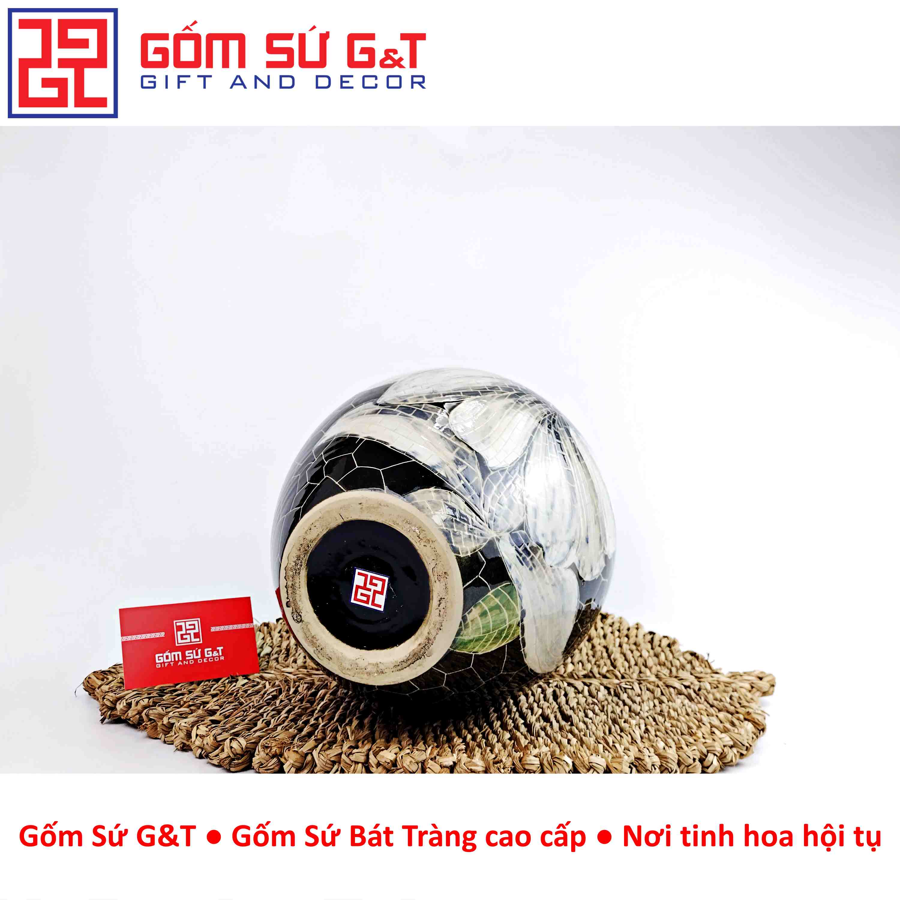 Bình hoa Bát Tràng cao cấp, hàng chuẩn loại 1 với kiểu dáng đùi ếch (phần đáy bình nhỏ, phình to ở phần trên và miệng bình) phối với họa tiết hoa đắp nổi cầu