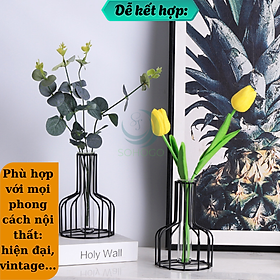 ✨Lọ Hoa Nghệ Thuật Khung Sắt Kèm Ống Thủy Tinh- Bình Hoa Trang Trí Khung Kim Loại Hiện Đại- Lọ Hoa Phong Cách Bắc Âu – Khung Sắt & Ống Thủy Tinh- Chân Đế Lọ Hoa Sáng Tạo Decor Nhà Cửa- Bình Hoa Mini Trang Trí Bàn Làm Việc/Phòng Khách