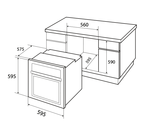 Kích thước khoét lỗ: R560 x S595 x C590 mm