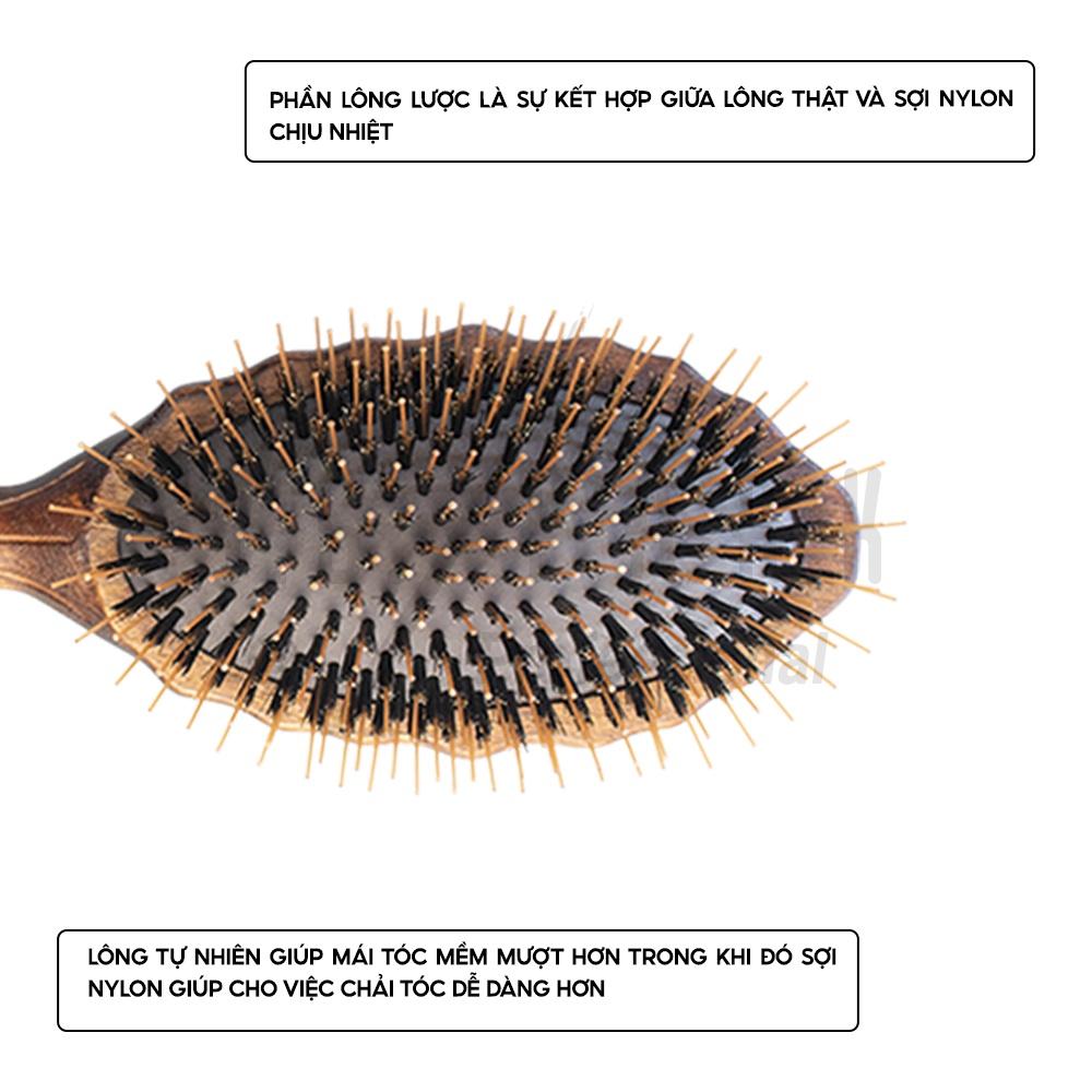 - Phần lông lược là sự kết hợp giữa lông thật và sợi Nylon chịu nhiệt. Lông tự nhiên giúp mái tóc mềm mượt hơn trong khi đó sợi Nylon giúp cho việc chải tóc dễ dàng hơn