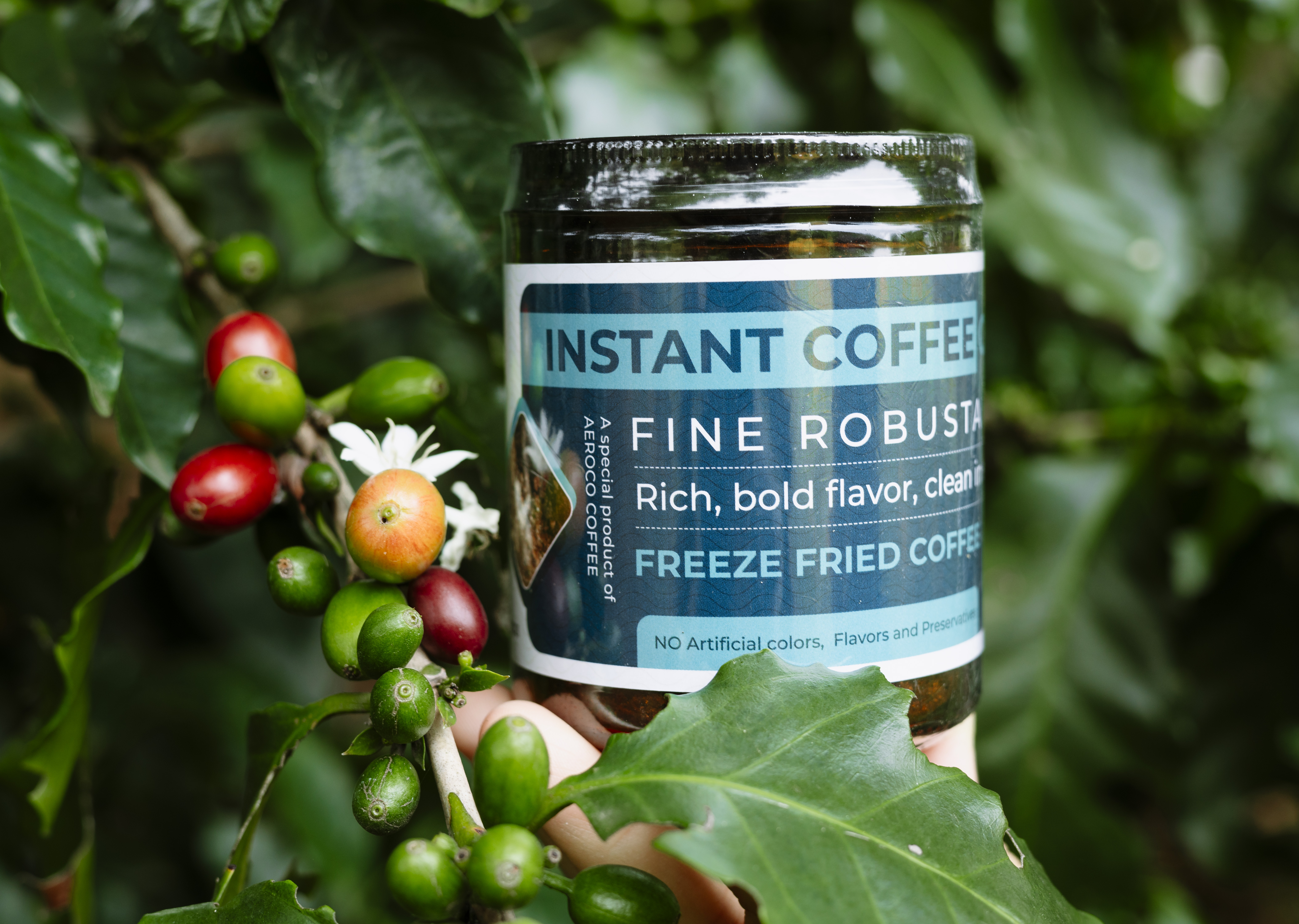 Mua tại TiktokCà phê hòa tan sấy lạnh thăng hoa được làm từ những hạt cà phê Robusta hảo hạng tại trang trại Aeroco Coffee.