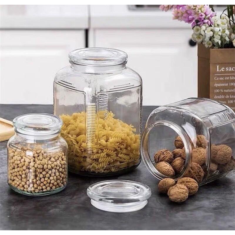 ✨lọ thủy tinh đựng gia vị, hạt, đồ khô hình vuông nắp gioăng cao su 3 cỡ
