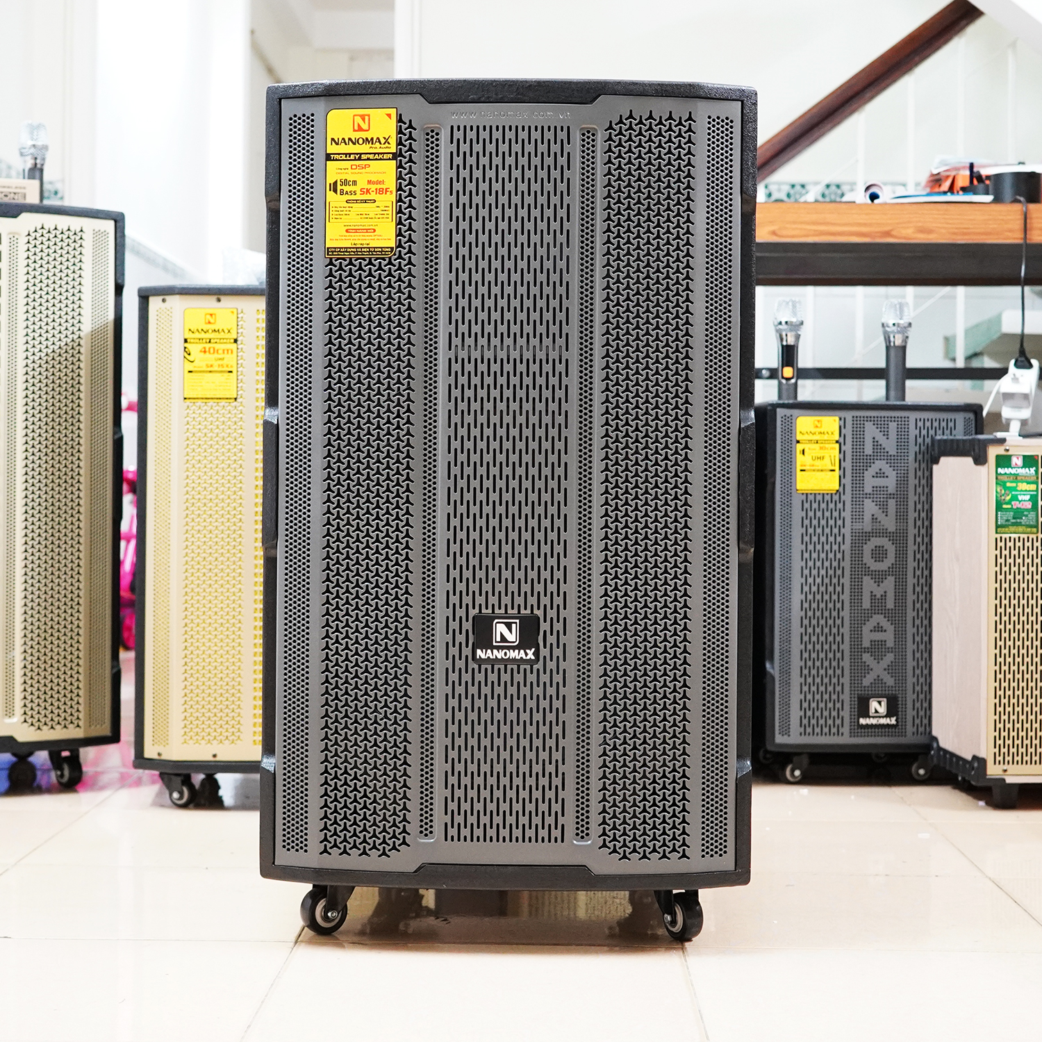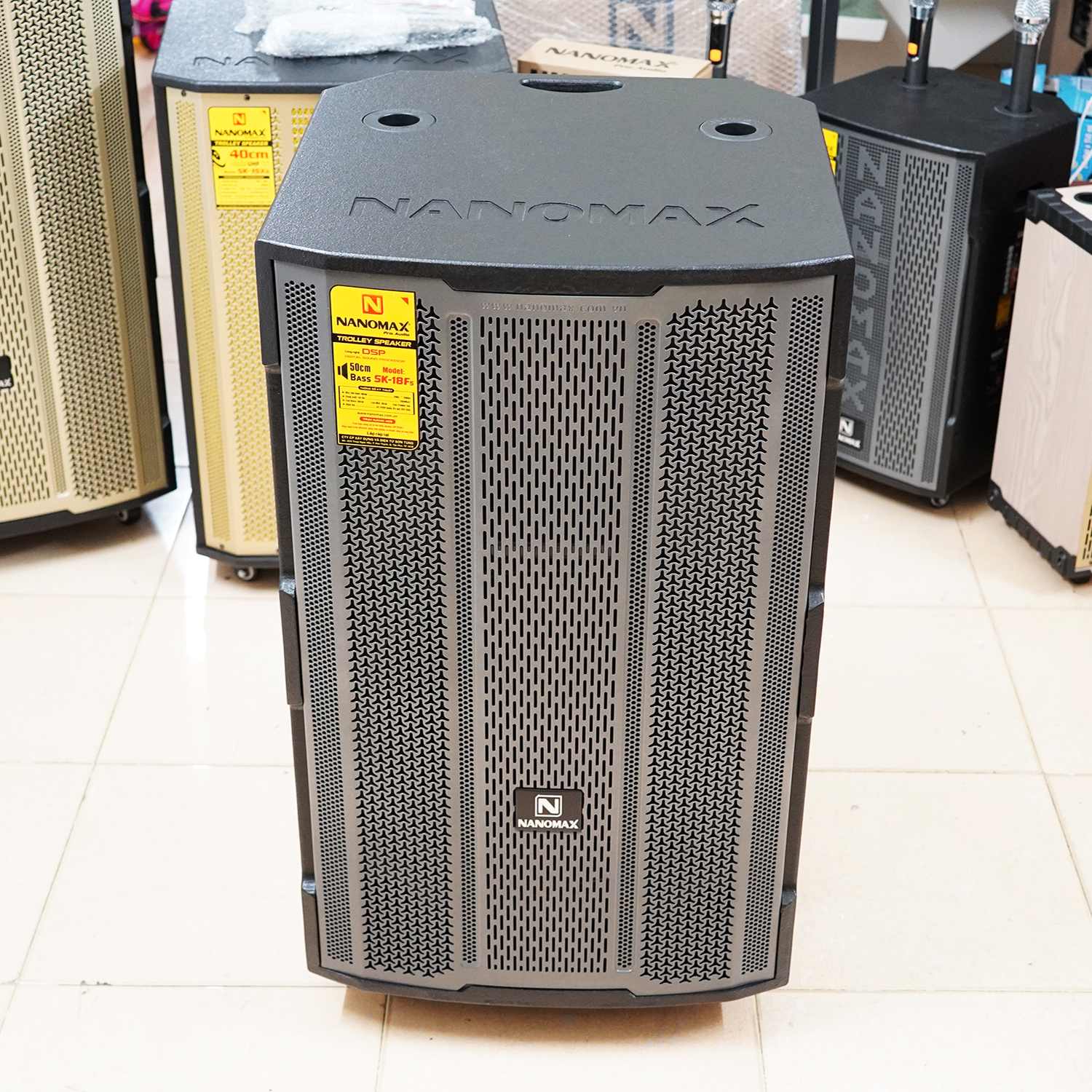 Loa kéo Nanomax SK-18F5 lưới xám là dòng loa karaoke công nghệ tiên tiến 2022 có Bass 5 tấc 50cm, công suất 1500w, sở hữu 3 đường tiếng với chiều cao đến 89cm. Nanomax SK-18F5 thực sự là mẫu loa kẹo kéo đẳng cấp, đốn hạ mọi đối thủ, sở hữu những công nghệ vượt trội và ưu việt mà bất kì ai cũng mơ ước.
