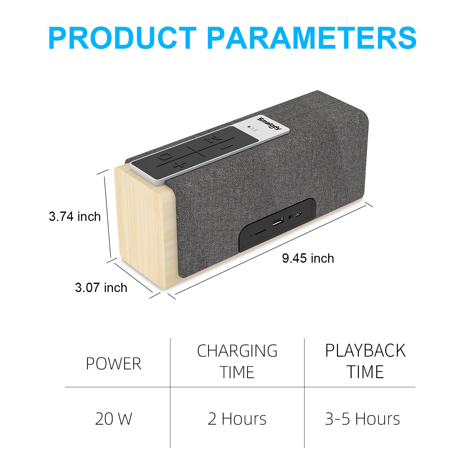 Adopting wooden material, SMALODY SL-90H wooden BT speaker is elegant and fashionable. It uses advanced BT 5.0 technology, effectively lower energy consumption and provides stable transmission. With 4*5W loudspeakers of 64mm large diameter, it can