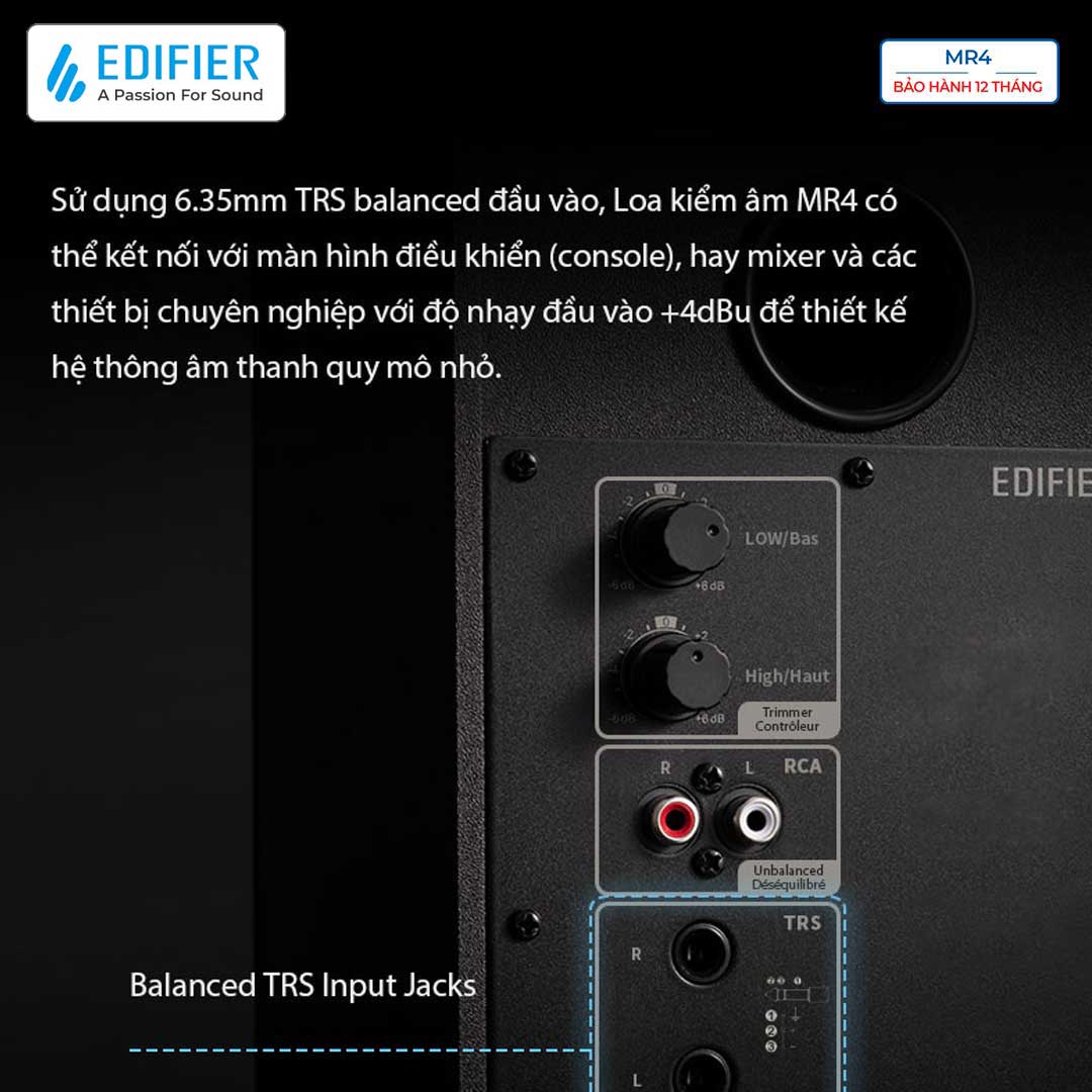 Edifier MR4 là mode loa kiểm âm hiệu chỉnh chuyên nghiệp, đạt chứng nhận tại hệ thống KLIPPEL của Đức. Dễ dàng chuyển đổi giữa chế độ điều chỉnh và chế độ nghe nhạc. Loa