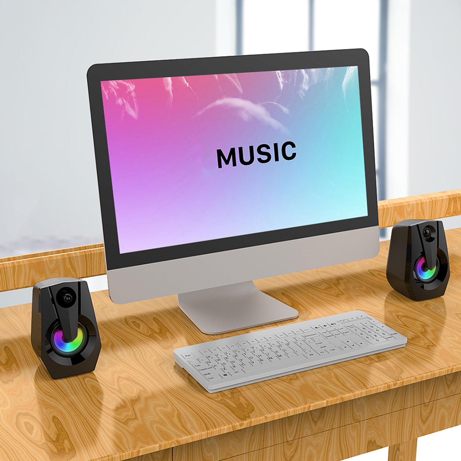Features: Comes with 2*5W double horns, surround sound and the deep bass matched, bringing you high-quality music. Compatible with computer, mobile phone, TV, tablet, game consoles and other 3.5mm audio devices. Independent volume knob, convenient