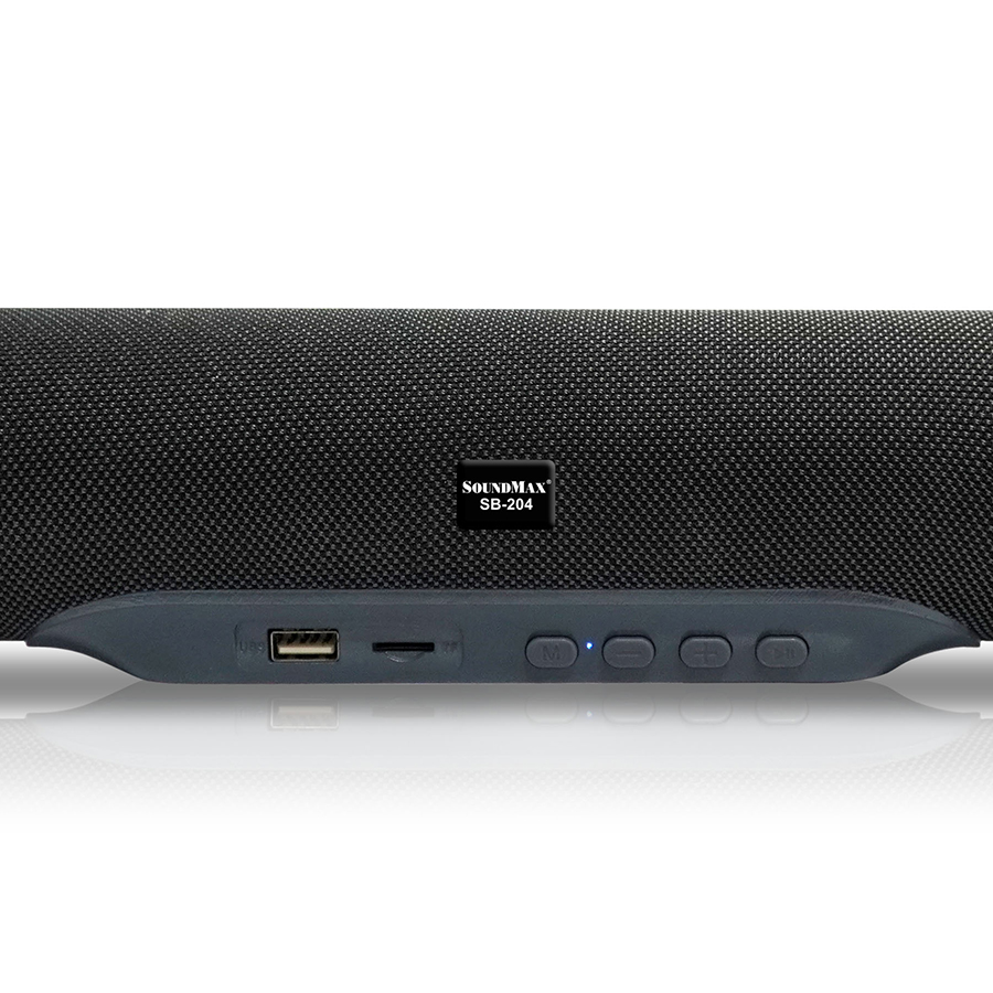 - Loa soundbar SoundMax SB-204/2.0 được làm từ vỏ nhựa bọc lưới màu đen giúp bạn sử dụng loa trong thời gian lâu mà không lo bị dẫn nhiệt. Kết nối đơn giản, dễ sử dụng