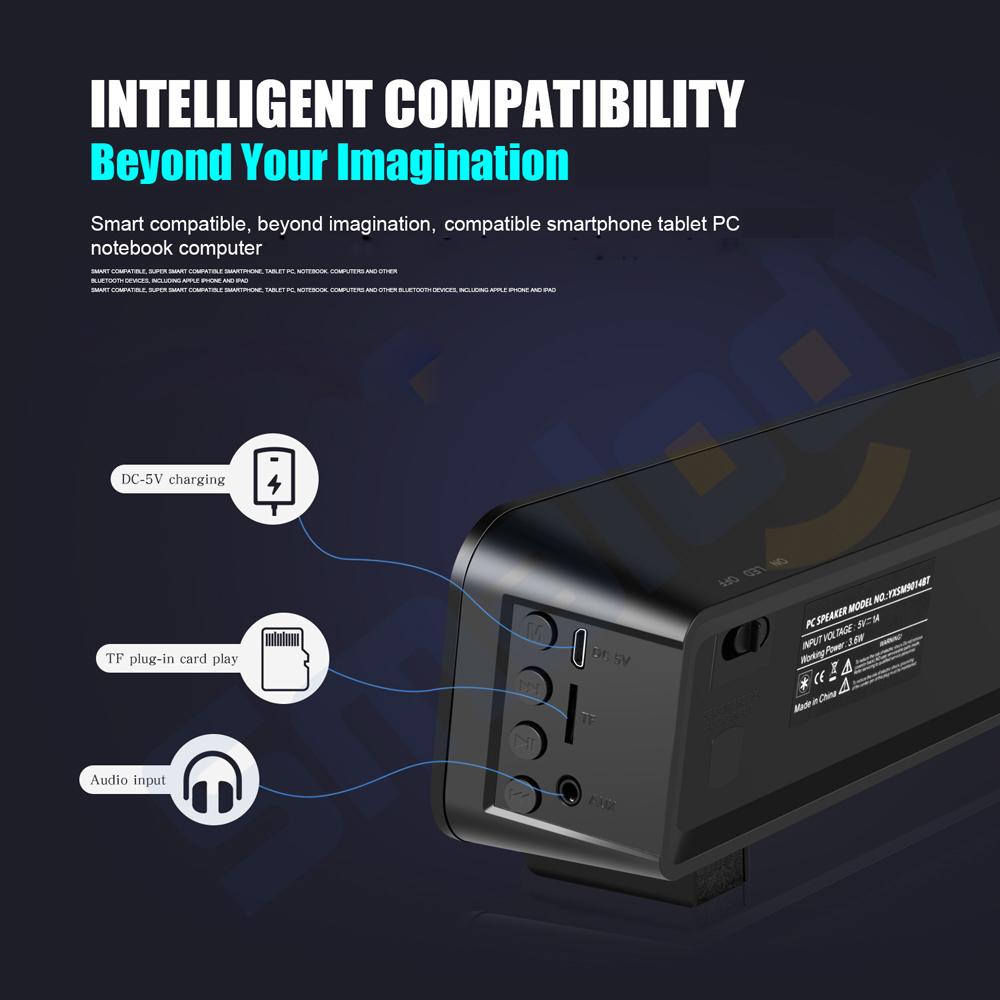 Overview: If you are finding a characteristic soundbar, this product is your dreaming item. Sound Bar uses unique noise reduction technology to equip your computer with high-quality full-range speakers. It is loud and clear, with
