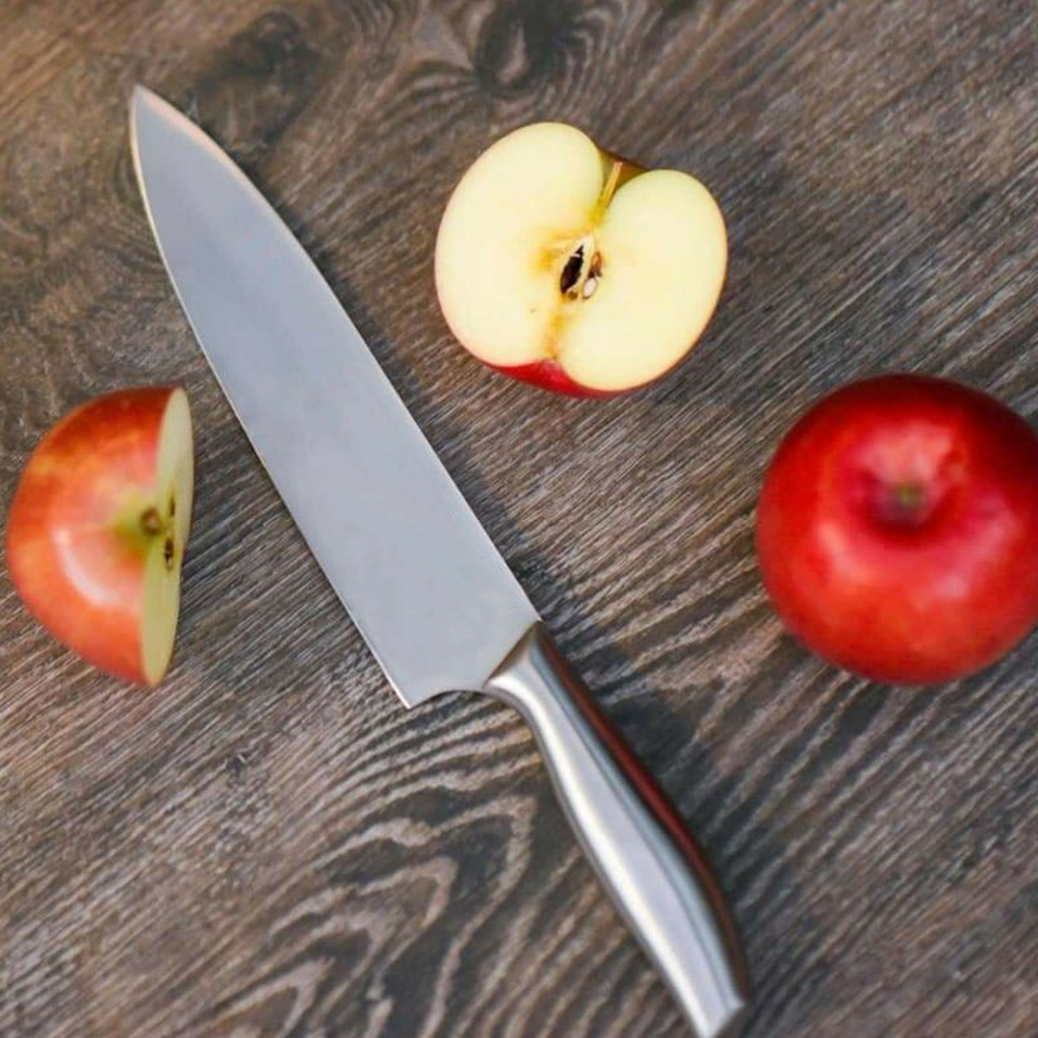 - Bộ dao inox 3 món kiểu Nhật Bản bao gồm: – 1 dao lớn thái thịt, chặt gà dài 31 cm, lưỡi dài 18 cm – 1 dao thái, gọt trái cây, rau củ quả dài 25 cm, lưỡi dài 12.5 cm – 1 dao gọt trái cây dài 21 cm, lưỡi dài 10.5 cm