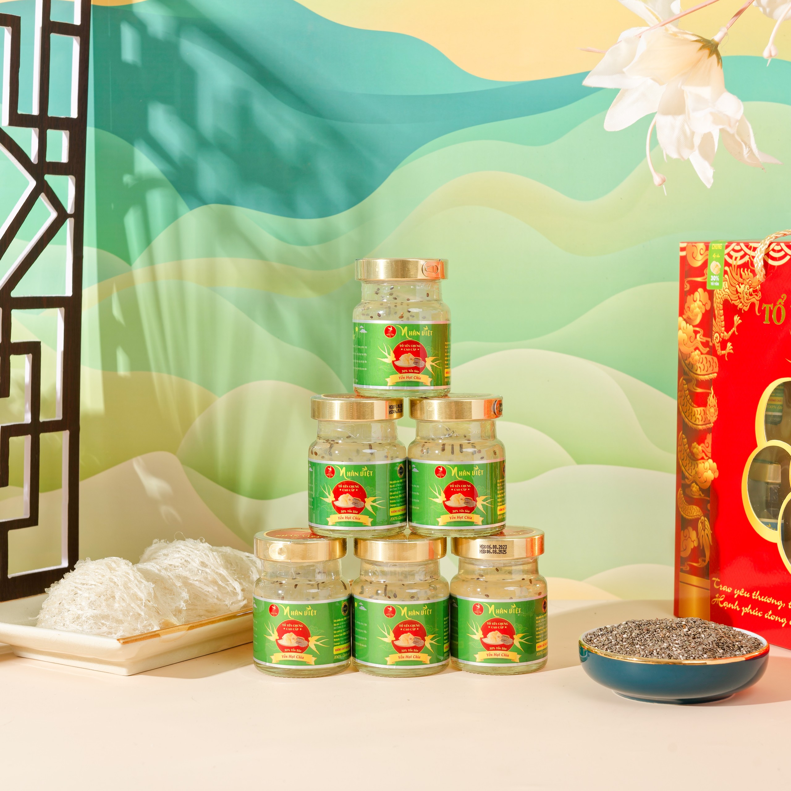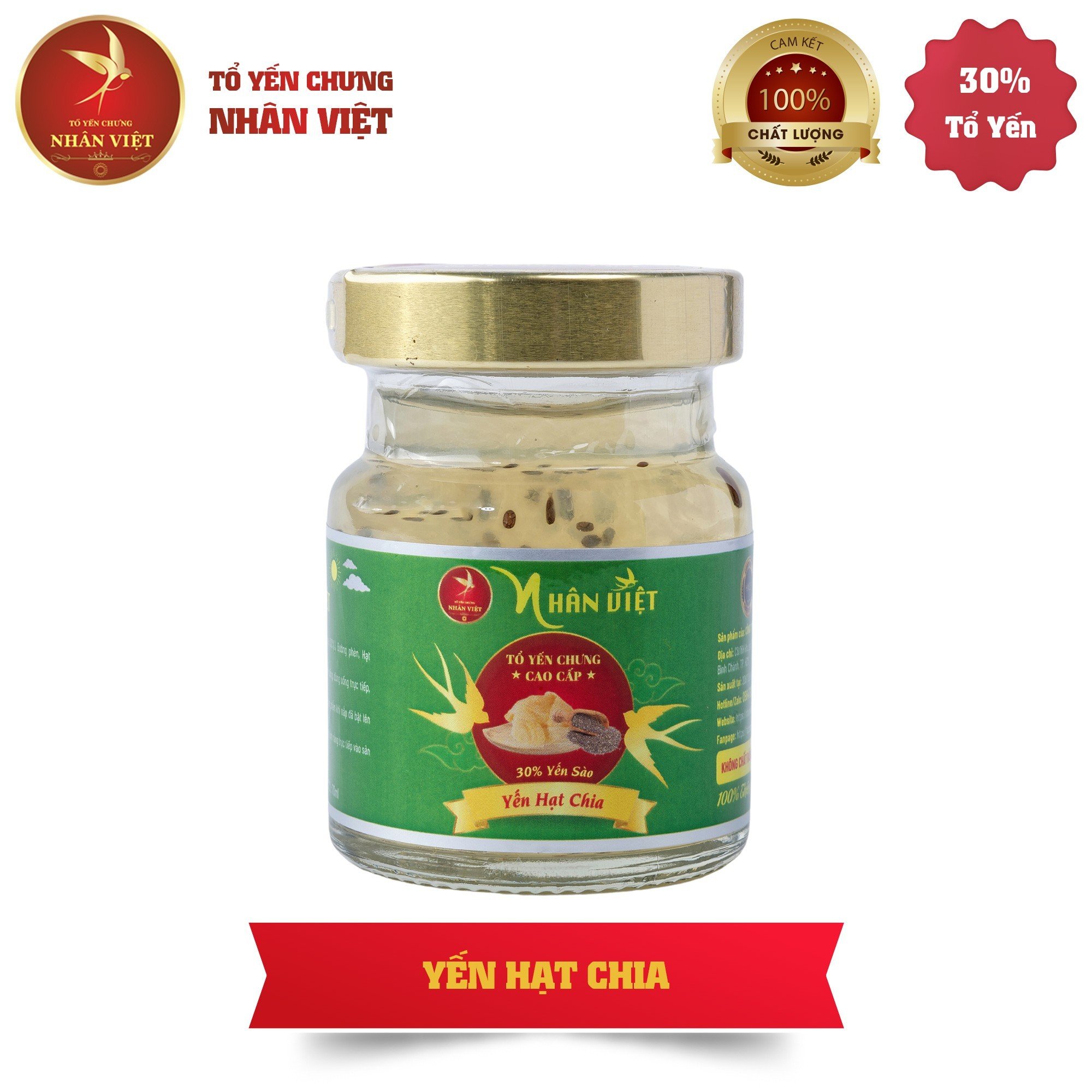 Yến hũ chưng Hạt Chia NHÂN VIỆT 30% Yến được chế biến từ nguyên liệu chính là 30% yến sào nguyên chất và đường phèn kết hợp cùng với Hạt Chia. Sự kết hợp hoàn hảo rất tốt cho sức khoẻ như: