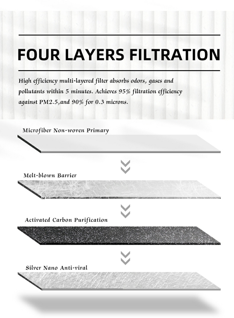 CẤU TẠO CAO CẤP – 4 LỚP LỌC CHUYÊN SÂU Lớp 1: Màng sợi nhỏ tích điện – chặn khói, bụi kích thước lớn