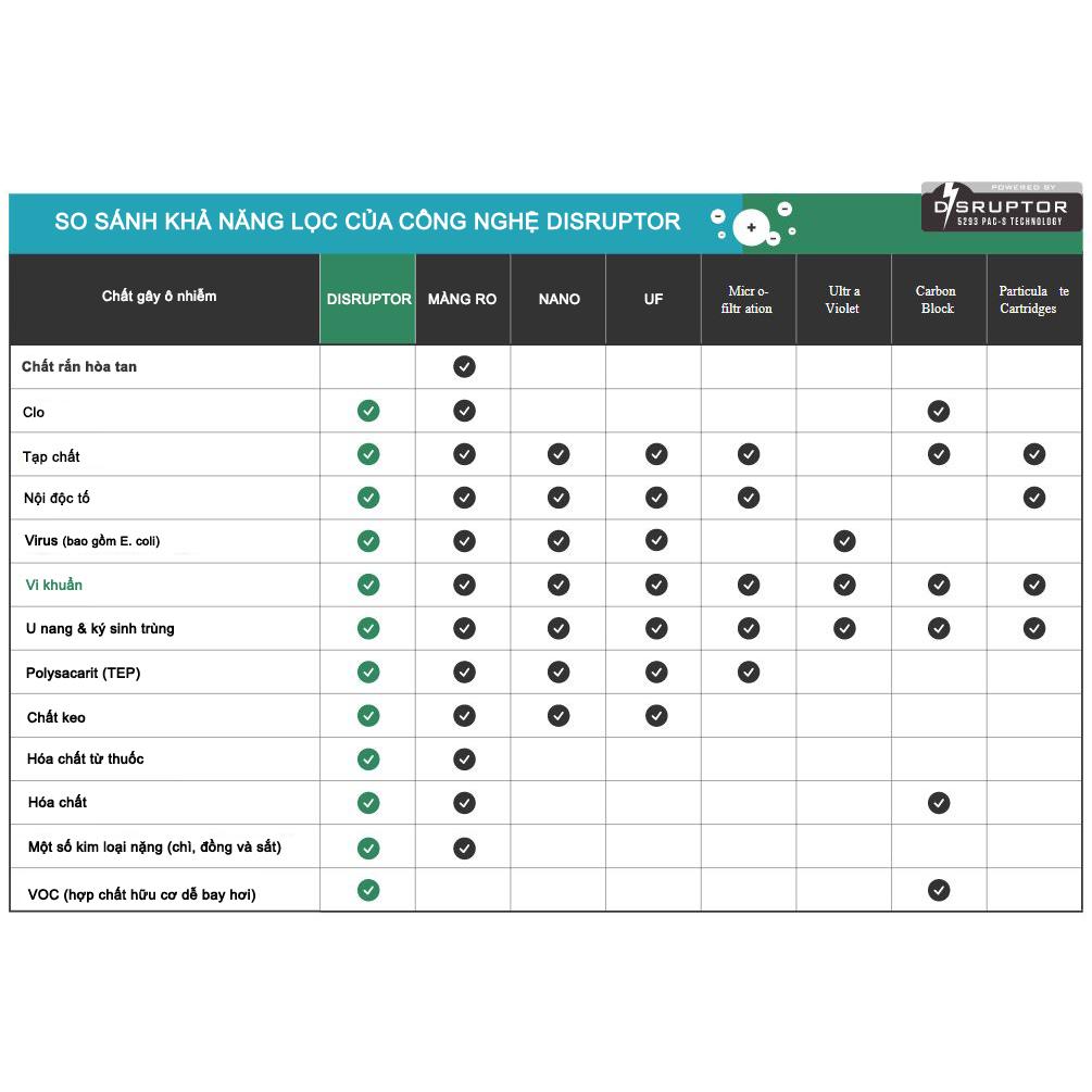 • Công nghệ Disruptor 3 trong 1 độc đáo, loại bỏ hàng trăm tỷ mầm bệnh trên mỗi m2 với hiệu suất 99,9999%: