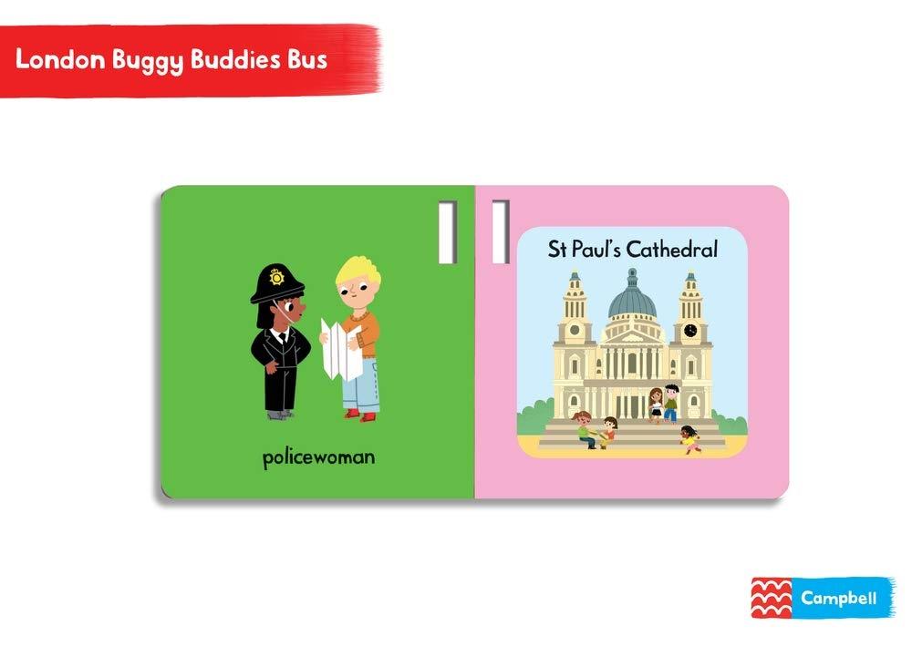 London Bus Buggy Buddy Make your way around the city with this new edition of London Bus Buggy Buddy! This handy board book by Campbell Books has a cloth strap that you can attach to