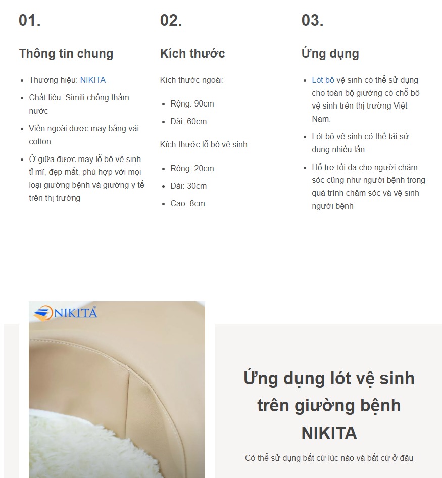 ✨Lót bô vệ sinh, giường bệnh NIKITA, Chất liệu Simili - Hàng chính hãng
