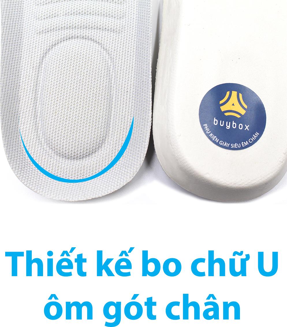 Lót giày thể thao được thiết kế vành dọc theo lót và bọc gót chữ U giúp lót giày ôm vào bàn chân.