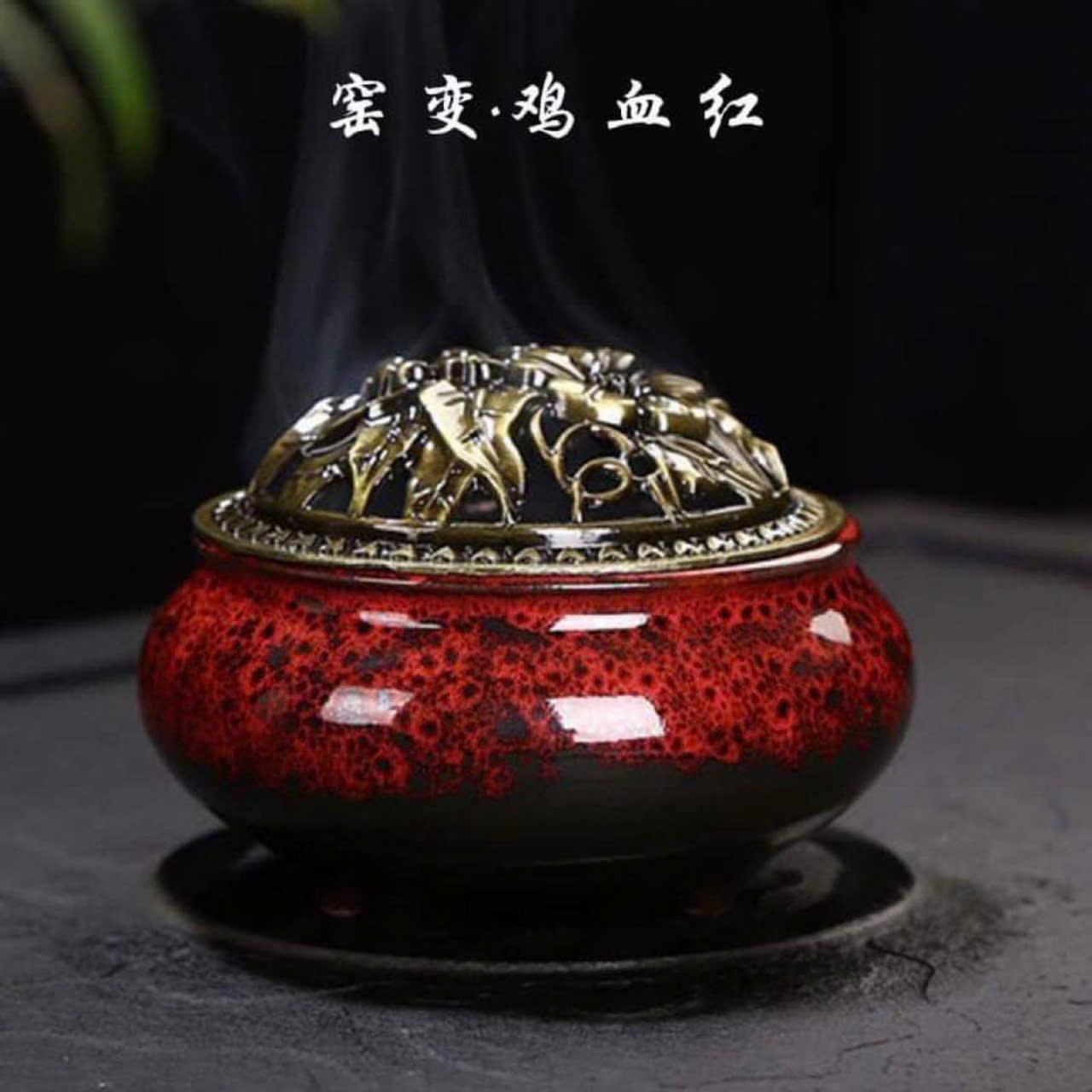 - 1 Lư gốm sứ tráng men cao cấp nắp thiếc