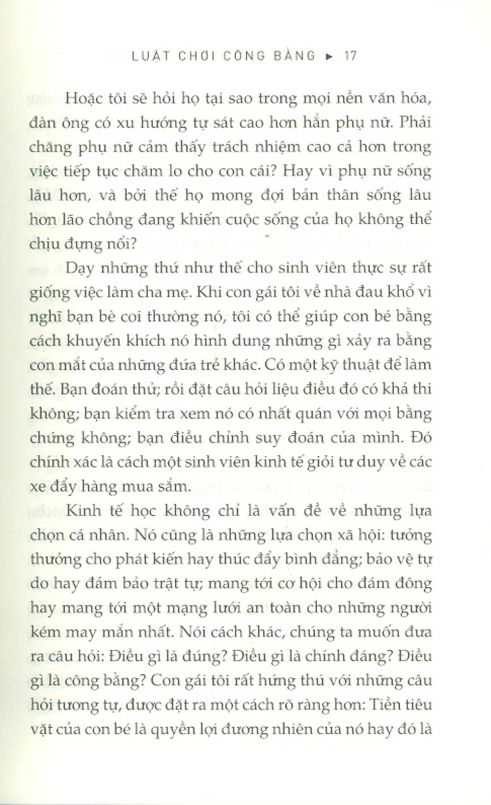 Steven Landsburg đã sử dụng kinh tế học để làm rõ những bí ẩn của đời sống hằng ngày, và dùng đời sống hằng ngày để soi tỏ những bí ẩn của kinh tế học. Ông lấy tương tác giữa cha mẹ và con cái để giải thích tính kinh tế của thương mại tự do và nhập cư, thuế lũy tiến, mức lương tối thiểu, vai trò của tiền tệ…