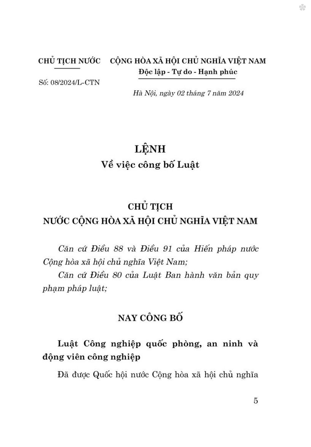 ✨Luật công nghiệp quốc phòng , an ninh và động viên công nghiệp 2024 - bàn in 2024