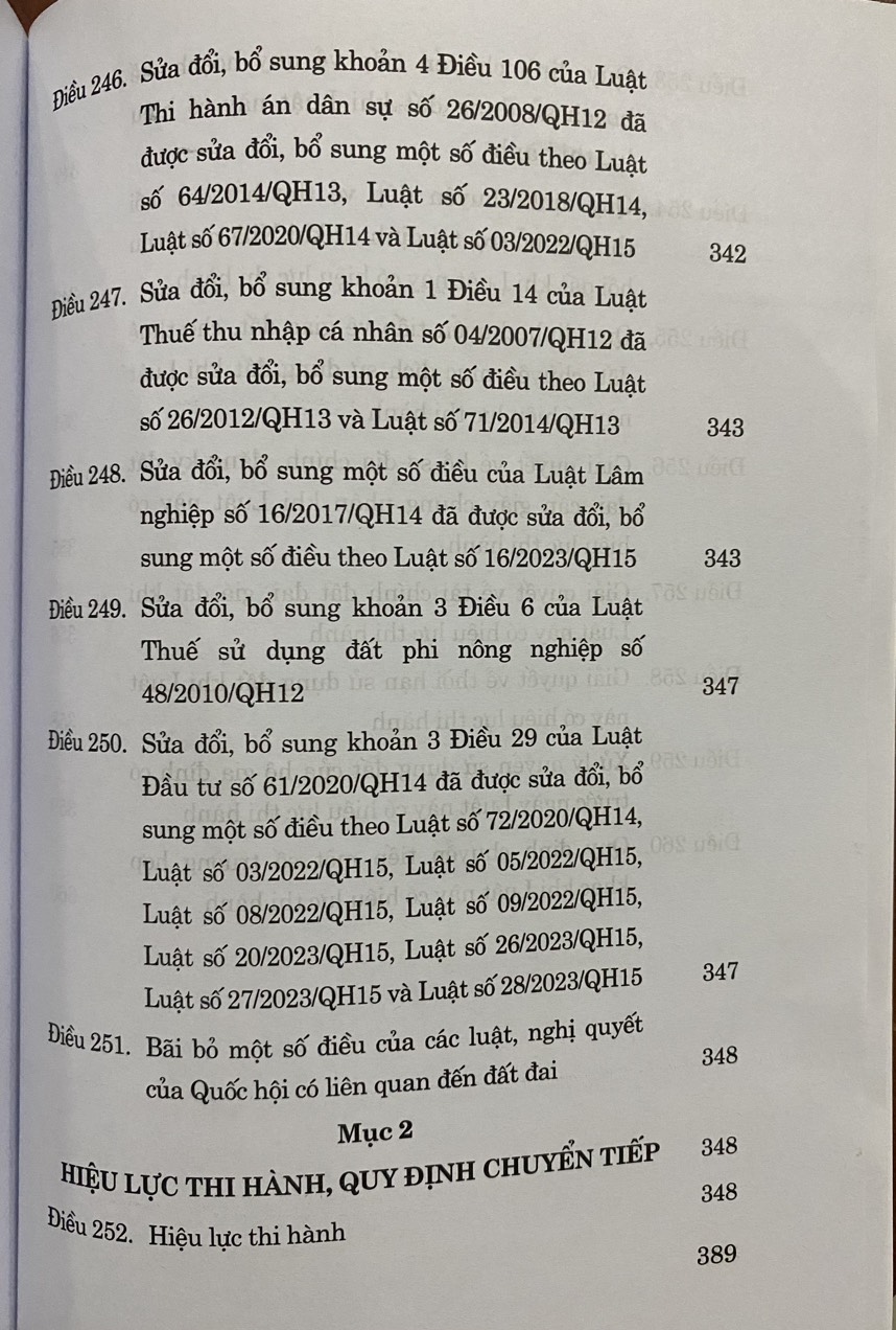 Ngày 13 tháng 01 năm 2024 , tại Kỳ họp bất thường lần thứ 5, Quốc hội nước Cộng hòa xã hội chủ nghĩa Việt Nam khóa XV đã thông qua Luật Đất đai số 31/2024/QH15 và có hiệu lực thi hành từ ngày 01 tháng 01 năm 2025. Tuy nhiên, với ý nghĩa và tầm quan trọng đặc biệt của Luật Đất đai trong đời sống kinh tế - xã hội, quốc phòng, an ninh, có tác động sâu rộng đến người dân, doanh nghiệp và có mối quan hệ chặt chẽ với nhiều luật khác có liên quan. Do đó, ngày 29 tháng 6 năm 2024 tại Kỳ họp thứ 7, Quốc hội nước Cộng hòa xã hội chủ nghĩa Việt Nam khóa XV đã thông qua Luật Sửa đổi, bổ sung một số điều của Luật Đất đai số 31/2024/QH15, Luật Nhà ở số 27/2023/QH15, Luât Kinh doanh bất động sản số 29/2023/QH15, Luật Các tổ chức tín dụng số 32/2024/QH15 (Luật số 43/2024/QH15). Theo đó, Luật Đất đai số 31/2024/QH15 sẽ có hiệu lực thi hành từ ngày 01/8/2024