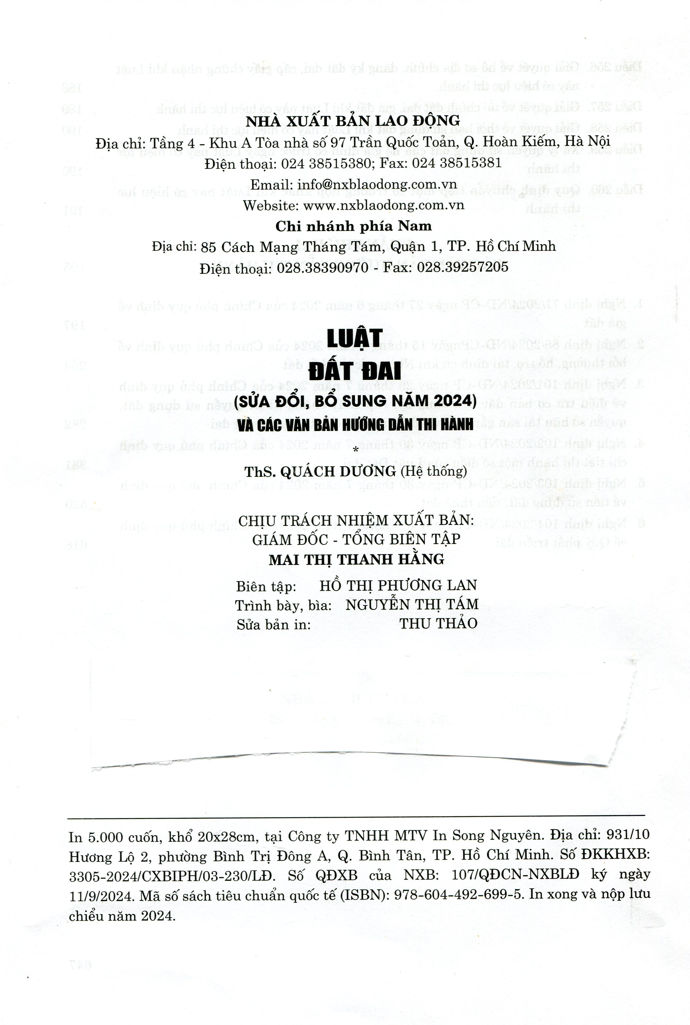 Luật Đất đai (sửa đổi, bổ sung năm 2024) và các văn bản hướng dẫn thi hành Tác giả: Quốc Hội Nhà xuất bản: Lao Động Công ty phát hành: Nhà sách Tư Pháp Ngày