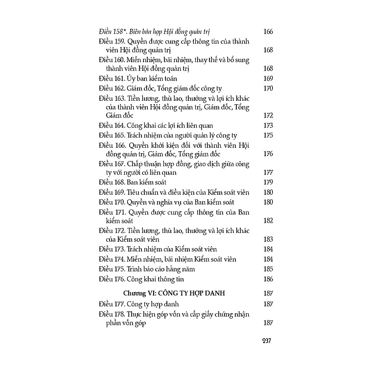 Luật Doanh nghiệp (hiện hành) (sửa đổi, bổ sung năm 2022) gồm 10 chương, 218 điều, quy định về thành lập, tổ chức quản lý, tổ chức lại, giải thể và hoạt động có liên quan của doanh nghiệp, bao gồm công ty trách nhiệm hữu hạn, công ty cổ phần, công ty hợp danh và doanh nghiệp tư nhân; quy định về nhóm công ty. Luật Doanh nghiệp được Quốc hội khóa XIV kỳ họp thứ 9 thông qua ngày 17/6/2020, thay thế cho Luật Doanh nghiệp năm 2014.