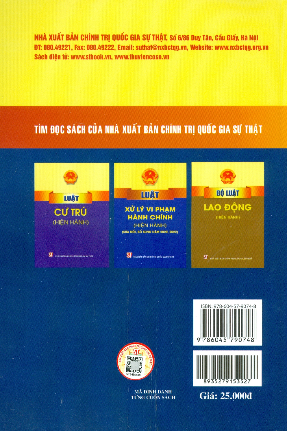 Sách - Luật cán bộ, công chức và VBHD thi hành Giá bìa: 180000 Nhà phát hành : Dân Hiền Tác giả: Quốc Hội Nhà xuất bản: NXB Lao Động Năm xuất bản 2022 Trọng