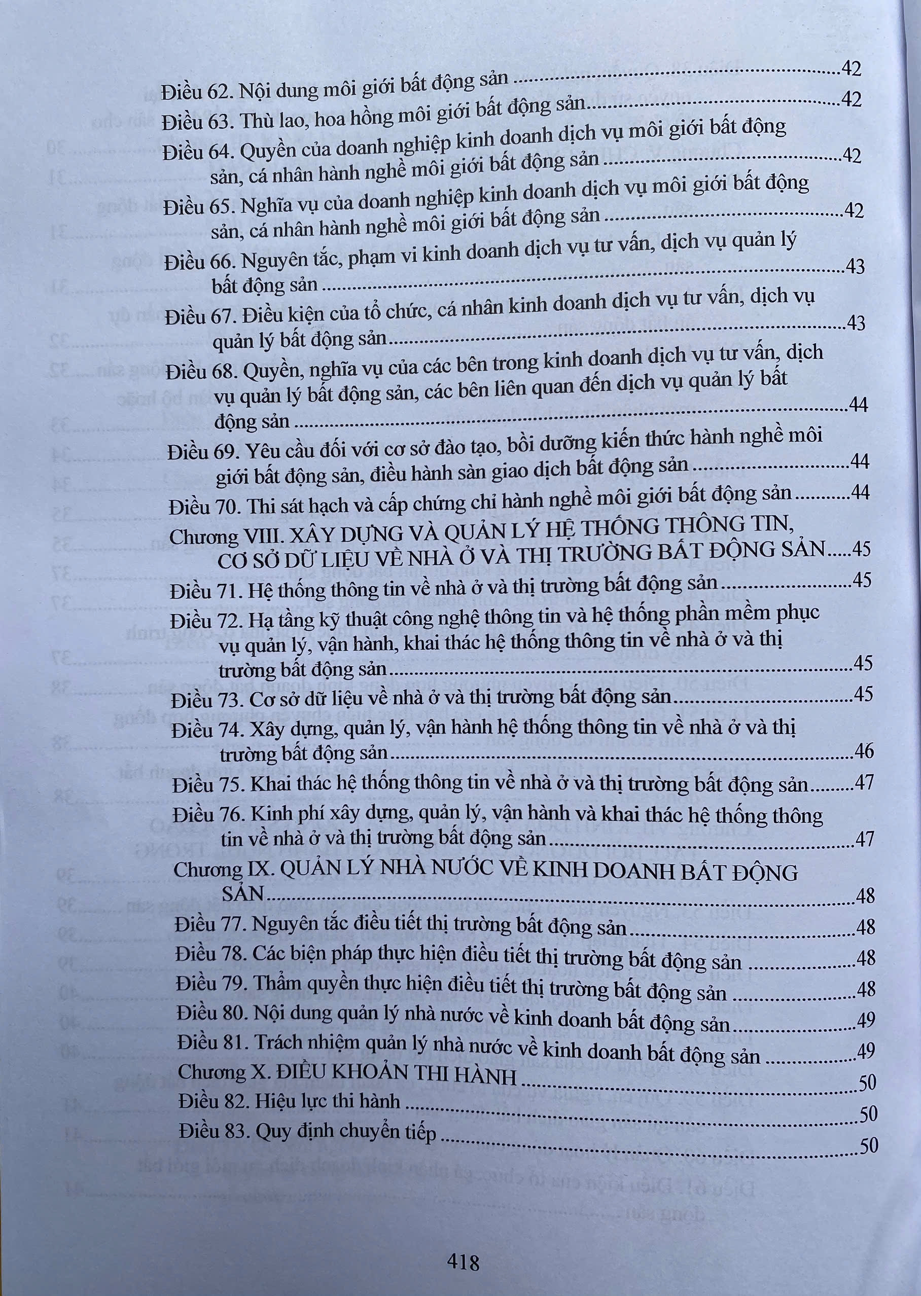 Ngày 28/11/2023 tại Kỳ họp thứ 6, Quốc hội khóa XV thông qua Luật Kinh doanh bất động sản 2023 gồm 10 Chương, 83 Điều. Luật chính thức có hiệu lực thi hành từ